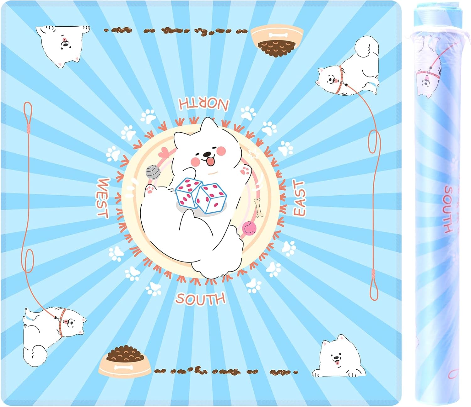 - Adorable Dog-Themed Mahjong Mat – Featuring a playful blue design with a white Samoyed and scattered dog treats, this XKDOUS mahjong table mat adds charm to game nights while keeping tiles organized.