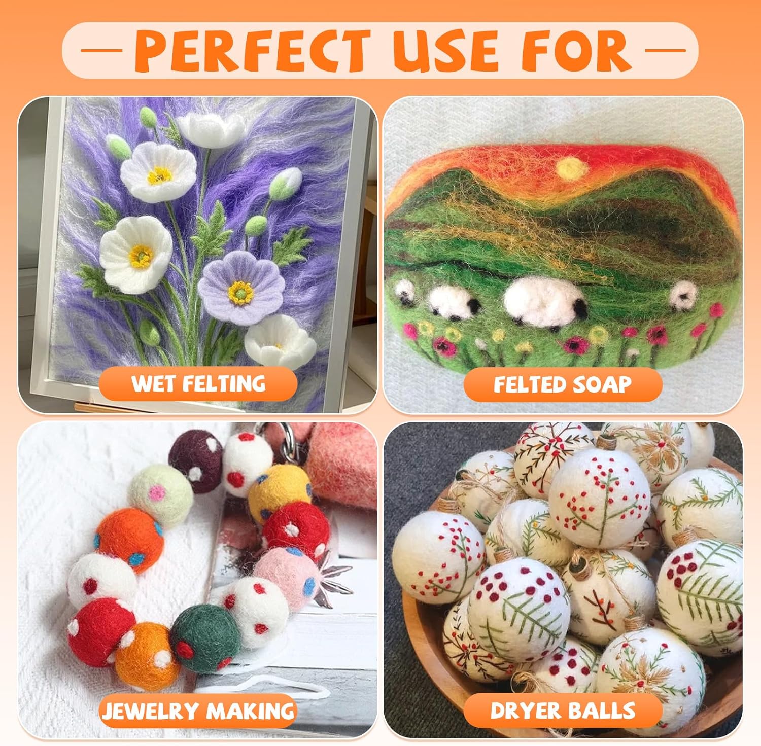- High-Quality Materials: Our Needle Felting Wool is made of high-quality fiber wool, is soft and fluffy and has good plastiity. They can be easily and quickly shaped into any shape you want, or you can quickly tear off the pieces for felting. All kinds of wool are suitable for felting beginners