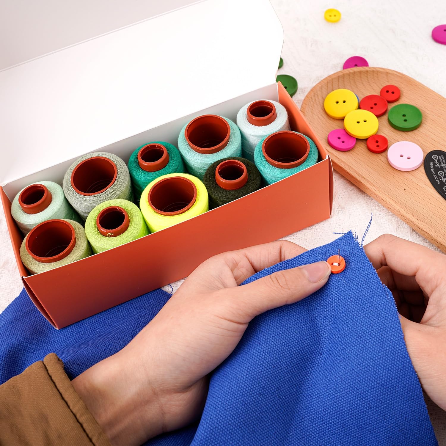 - 【Multicolor thread for sewing- Rich and Practical Colors】This sewing thread set comes with a vibrant combination of 10 different green colors, meeting all your color - matching needs.10 brilliant shades, ensure your stitches are not just functional but also a bold and beautiful statement.