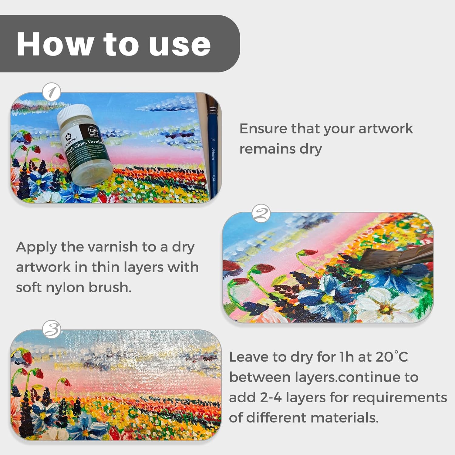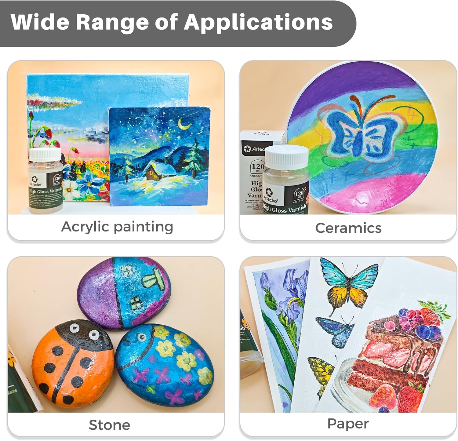 Artecho High Gloss Varnish 4oz / 120ml for Acrylic Painting, Wood, Clay, Canvas