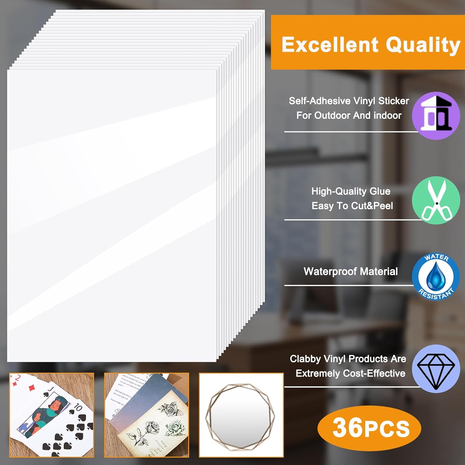 Clabby 36 Sheets Holographic Sticker Paper A4 Vinyl Sticker Paper Self Adhesive Waterproof Transparent Film, 11.7 x 8.3 inches(Clear)