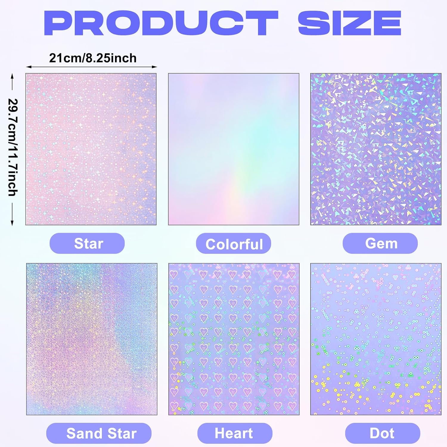 - What you receive: the package contains 36 sheets of transparent holographic films; These A4 holographic sticky paper sheets are in A4 size, namely 11.7 x 8.3 x 0.2 inches, enough to meet your different needs; Please note that these films are not printable, do not use them on printers