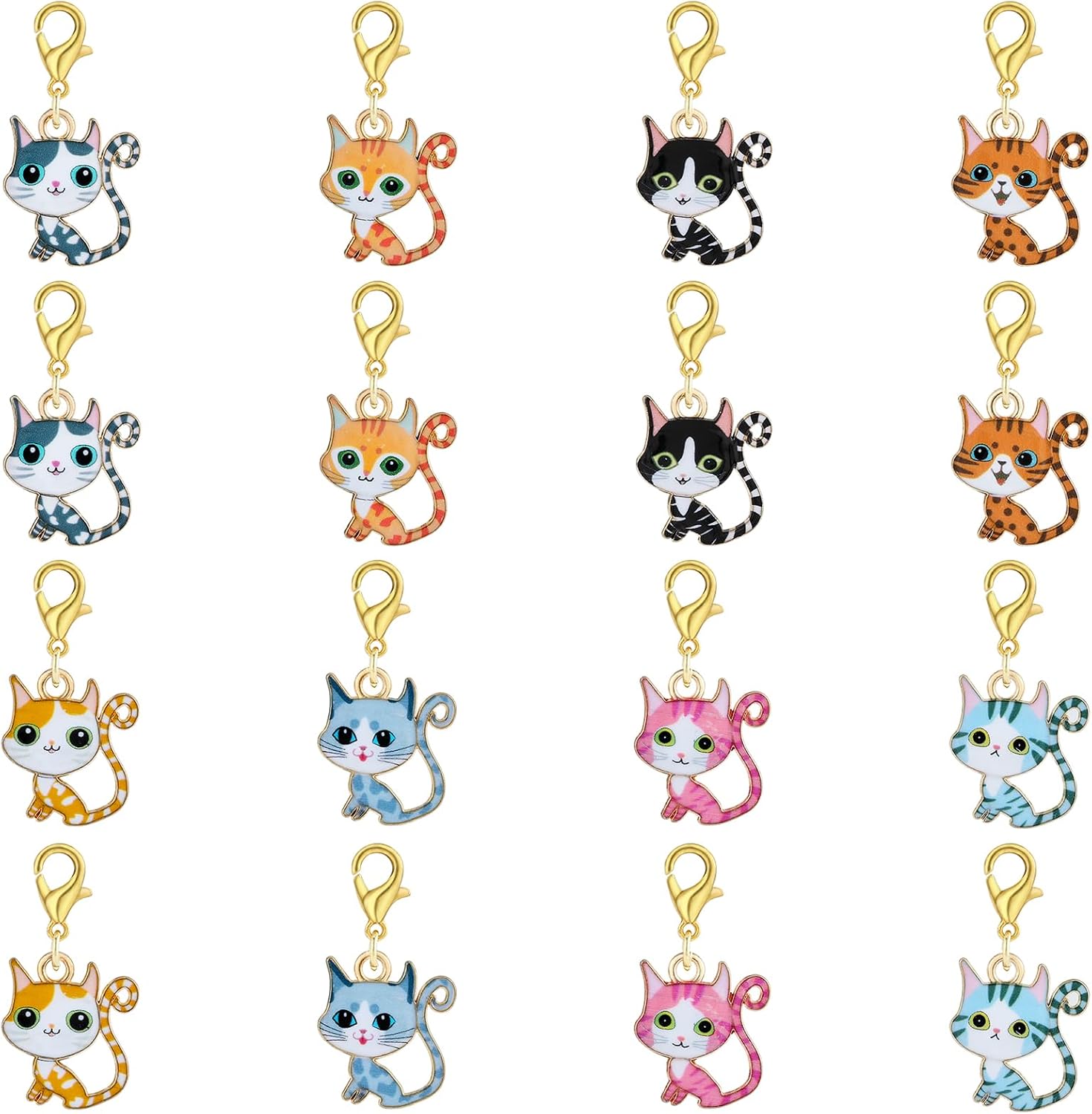 BEEFLYING 16Pcs Cat Stitch Marker Charms for Crocheting and Knitting, 8 Styles Alloy Enemal Crochet Knit Stitch Marker Pendant with Lobster Clasp for Sewing Quilting Handmade Jewelry