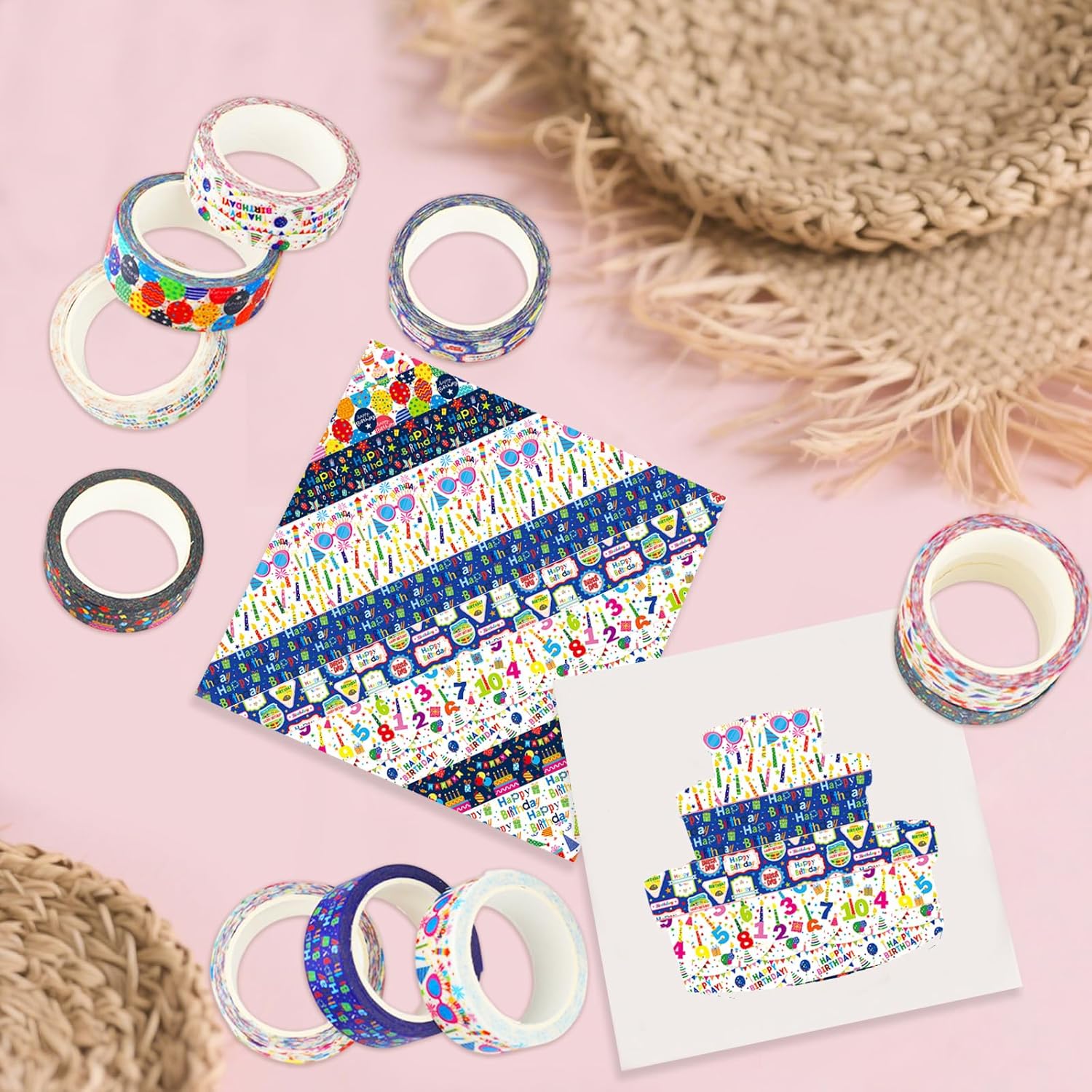 - VALUE PACKAGE: Receive 12 rolls of birthday-themed washi tape, featuring cheerful designs like cakes, candles, balloons, and more. This versatile set is ideal for birthday crafts, decorations, and year-round creative projects.