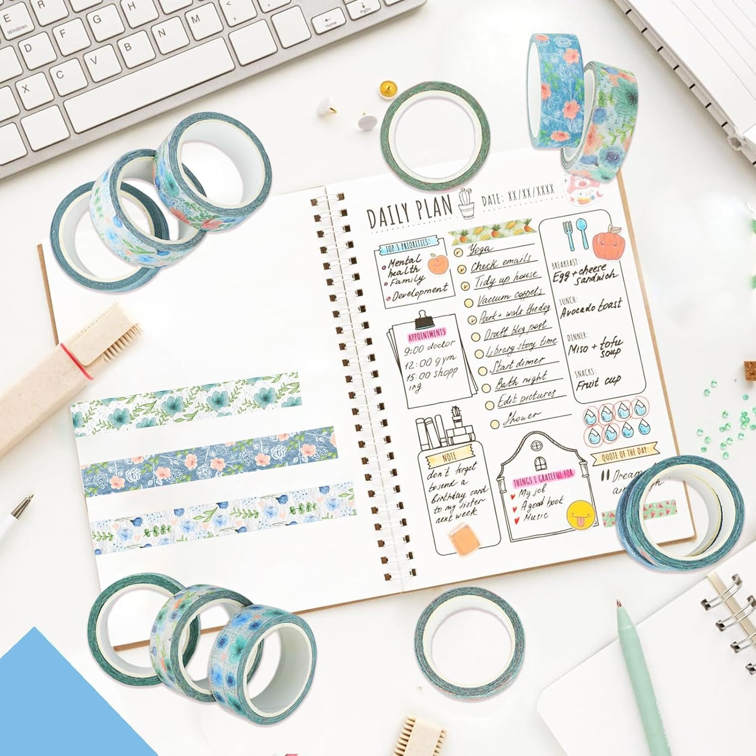 - VALUE PACKAGE: Unlock 12 rolls of vintage-inspired floral washi tape! Featuring delicate blue roses, blooming pink peonies, and lush green foliage, this set offers endless possibilities for crafters, journal lovers, and party planners.