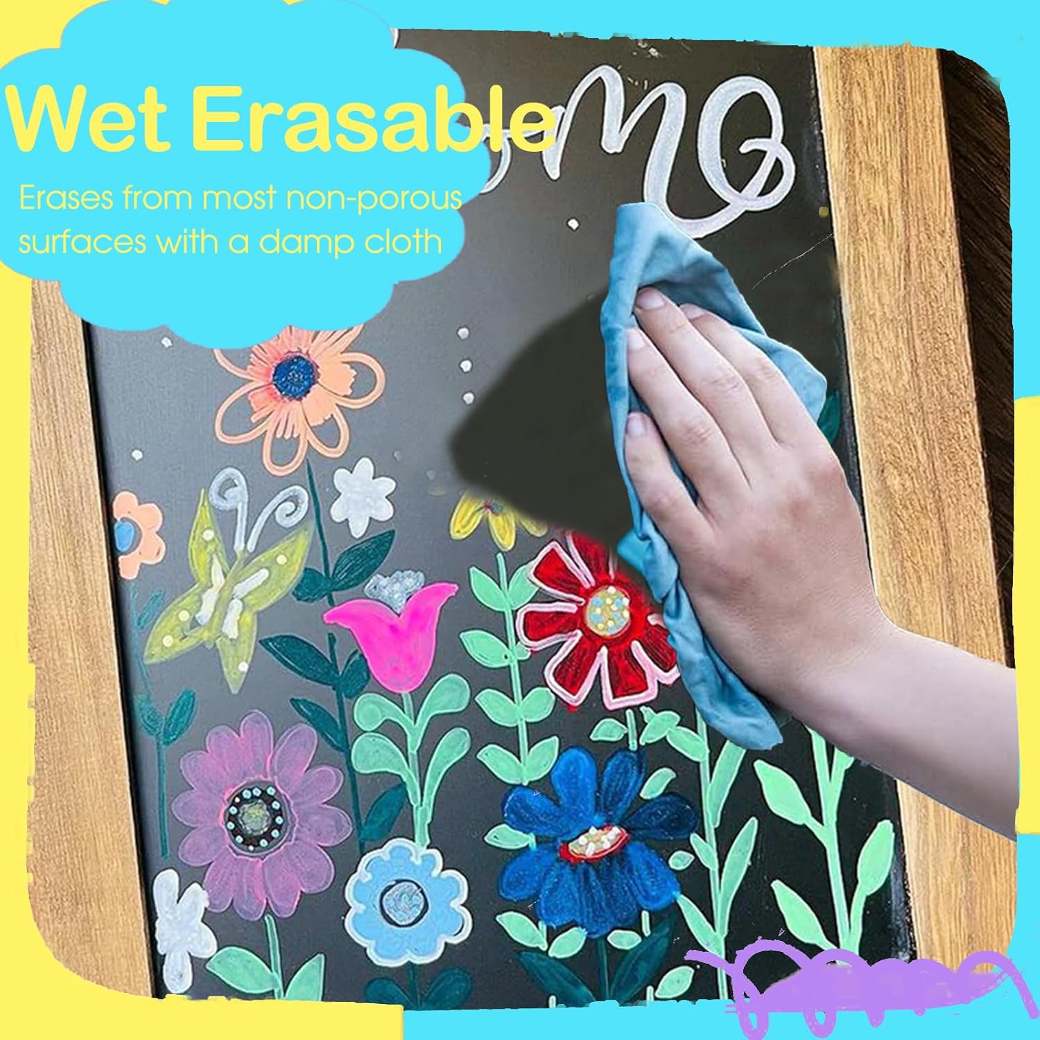 - High Quality Ink & Non-Toxic: window markers are crafted with top-notch water-based ink that's dustless, non toxic formula is both eco-friendly and safe for use at home. For Adults Coloring & Painting Canvas, DIY crafts projects. These Blackboard Chalk Markers are safe for kids and offer more ink capacity than others big chalk markers pen. No more worries about running out of ink at crucial moments, ensuring your chalk window markers last longer.