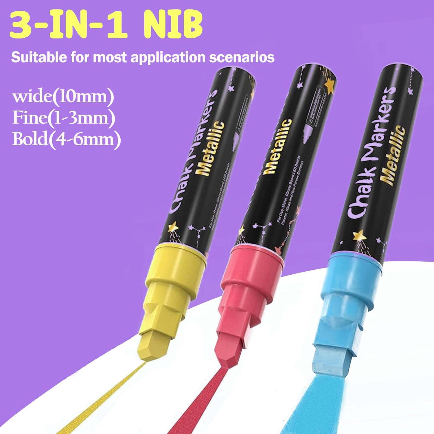 Window Chalk Markers for Cars Glass Washable, 8 Colors Metallic Jumbo Liquid Chalk Marker Pens with 10mm 3 in 1 Nib Wide Tip, Chalkboard Markers Car Window Paint Pen for Auto, Mirror, Poster