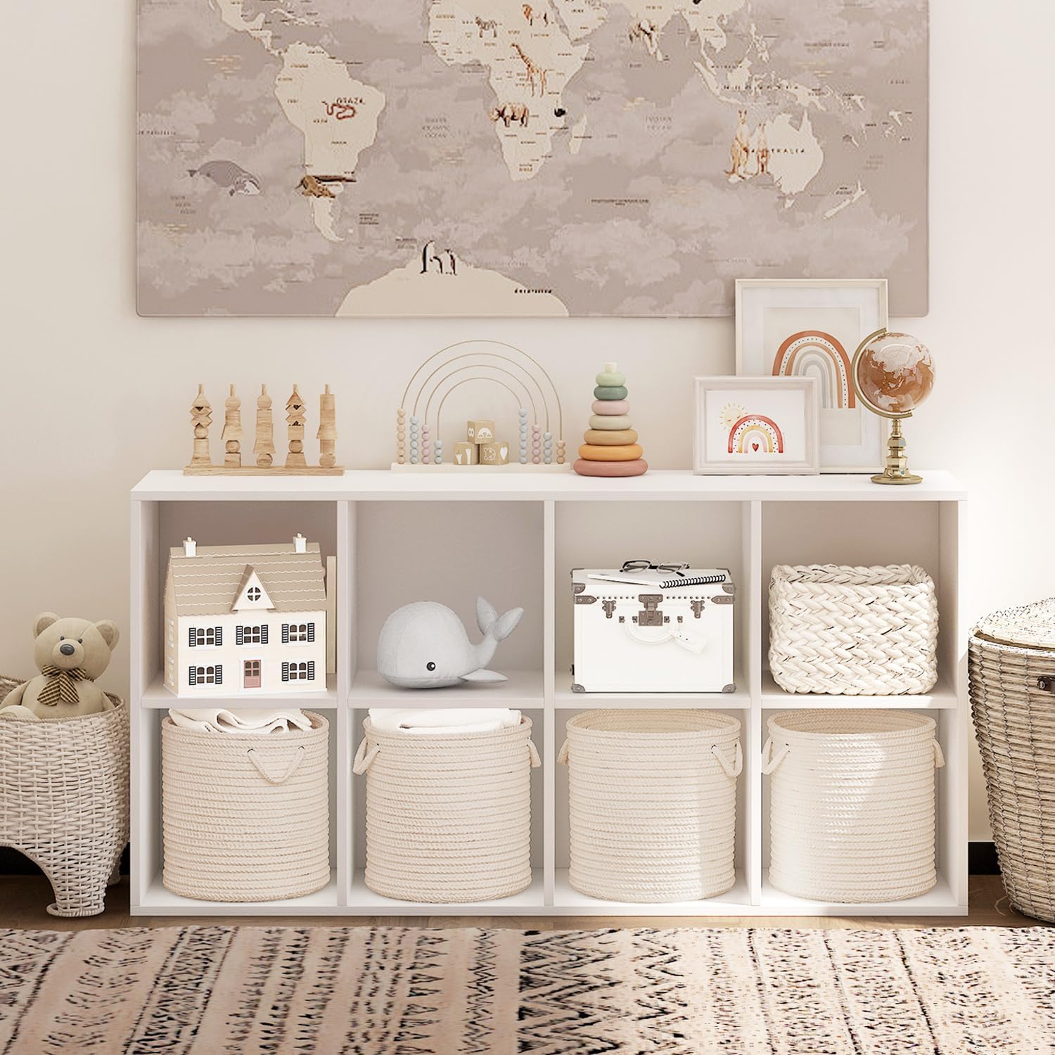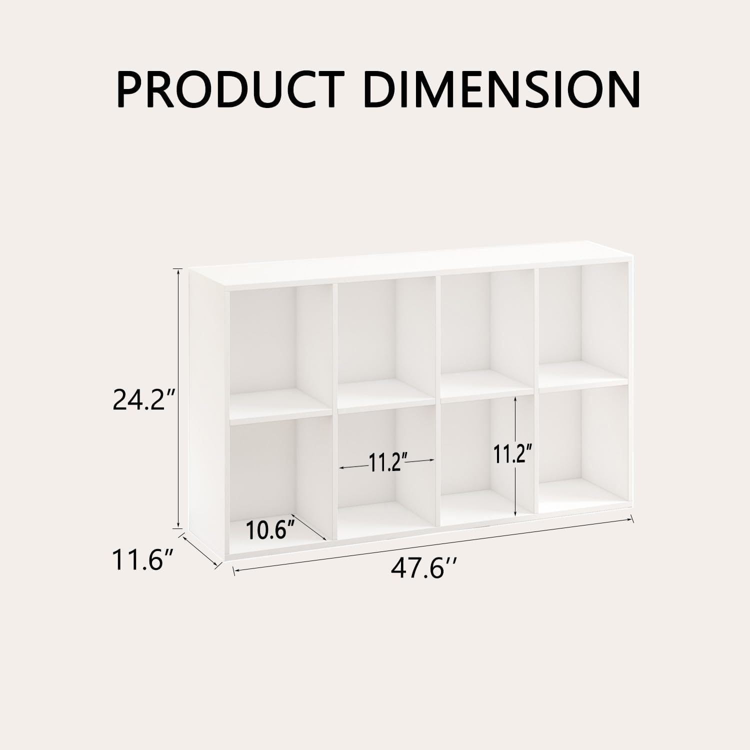 Wooden 8 Cube Storage Organizer with Closed Back Panel,White Shelf Heavy Duty Cubby Storage Organizer with Compartments for Living,Display Shelf,Bookshelf (White, 8-Cube)