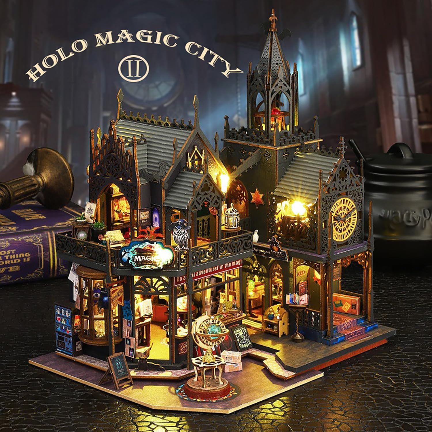 DIY Book Nook Kit - DIY Miniature Dolls House Kit with Furniture and LED Light, 3D Puzzle Wooden Art Bookends, Model Kits for Adults to Build (Holo Demon City)