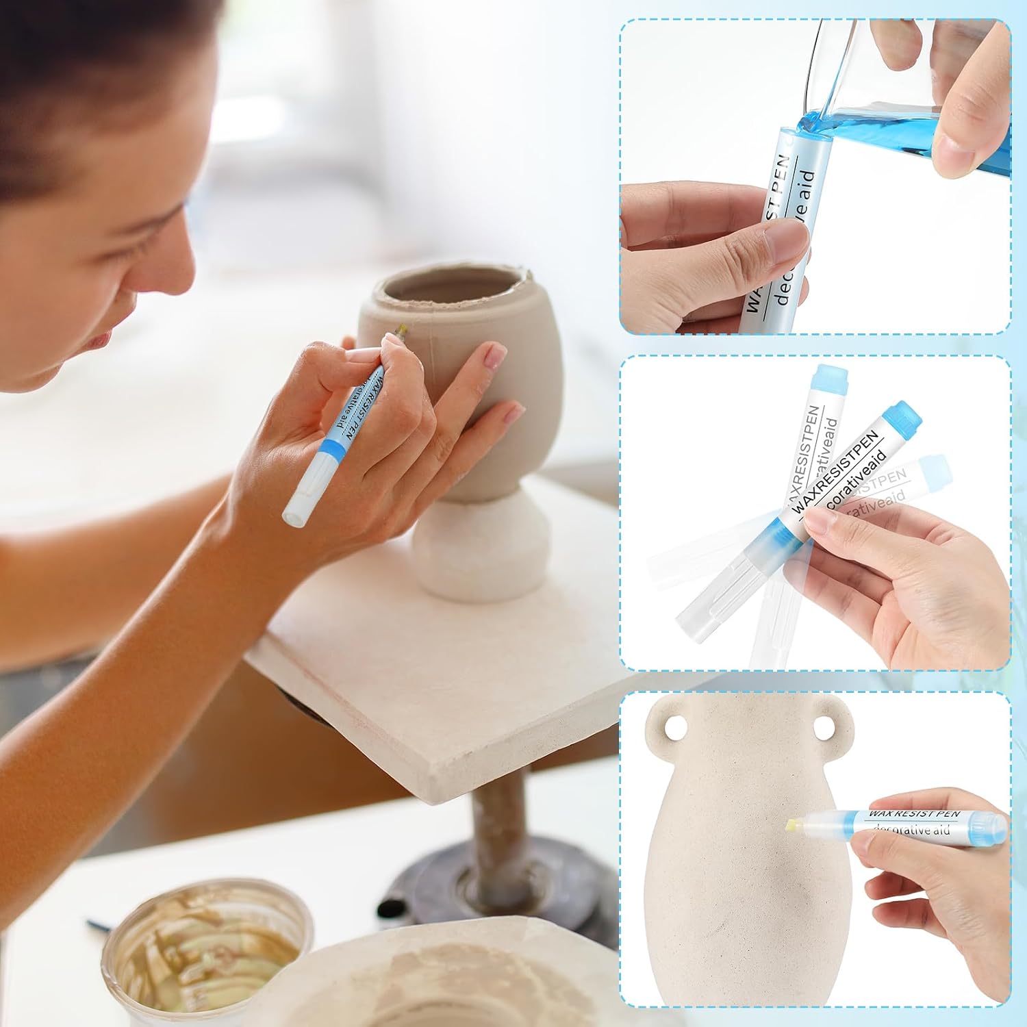 - Effortless Application: our wax resist pens are designed for ease of use, allowing you to start painting easily; Remove the cap and press the tip for smooth wax flow, creating stunning pottery patterns