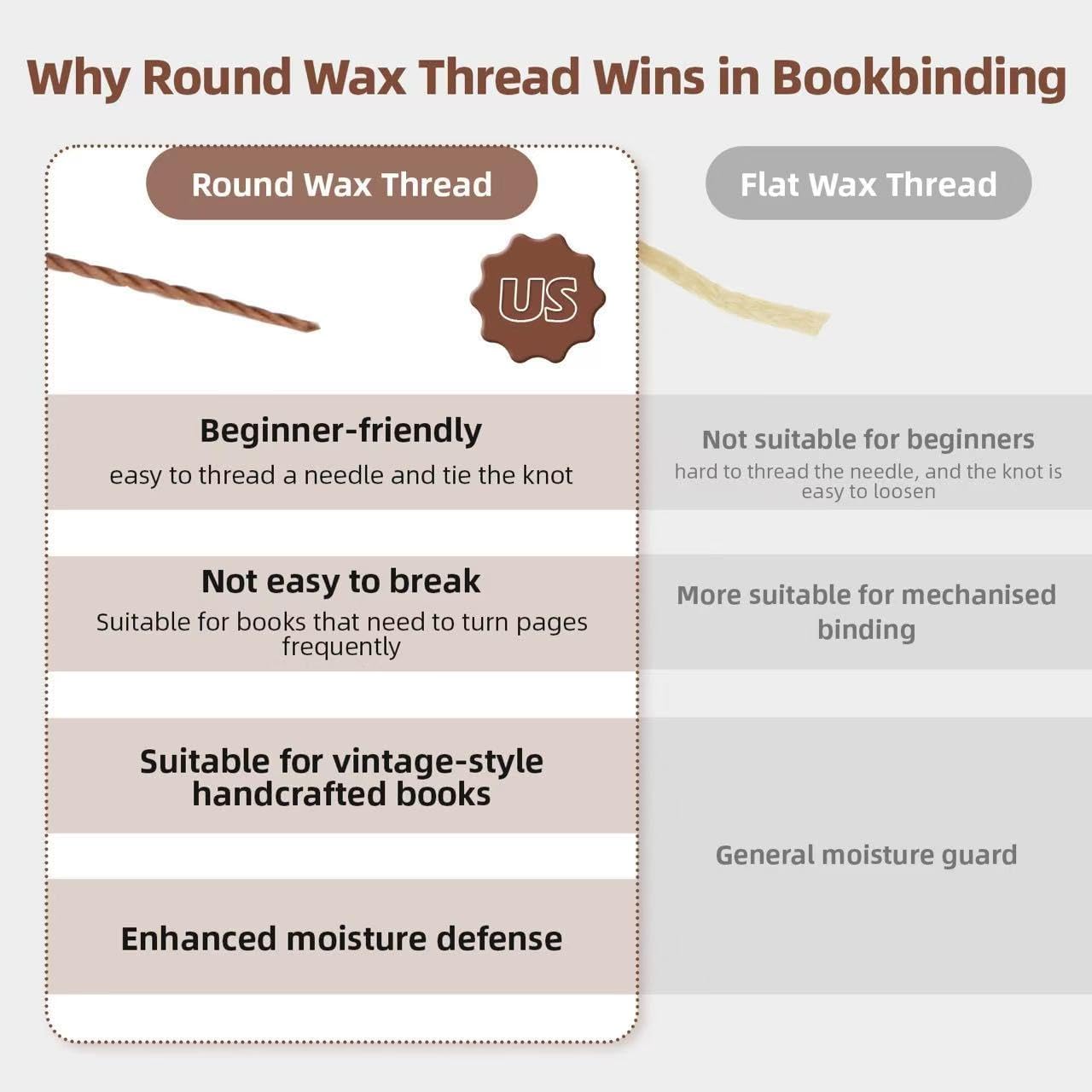 - PREMIUM NATURAL WAXED THREAD: 0.55mm/0.8mm diameter, 33 yards/16 yards spools of all-natural waxed linen thread (stronger than standard hemp cord), designed for strength and a smooth finish. Undyed and eco-conscious, part of our Classic Collection for sustainable crafting.