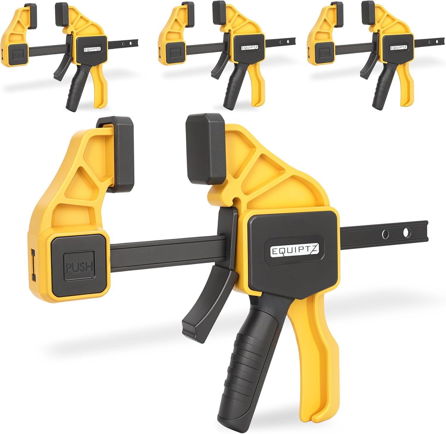 - 5️⃣ Comfortable & Non-Slip Grip – The ergonomic quick clamps feature soft yet durable padded jaws to protect your workpiece while providing a secure grip, making it easy to handle even during extended use