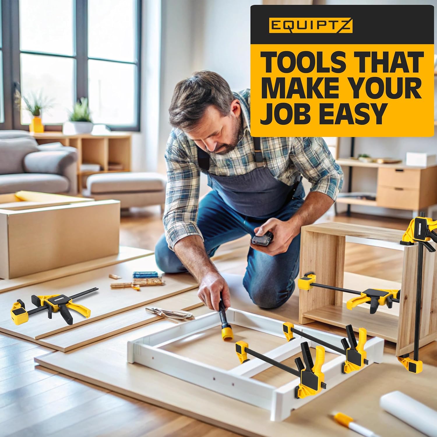 - 5️⃣ Comfortable & Non-Slip Grip – The ergonomic quick clamps feature soft yet durable padded jaws to protect your workpiece while providing a secure grip, making it easy to handle even during extended use