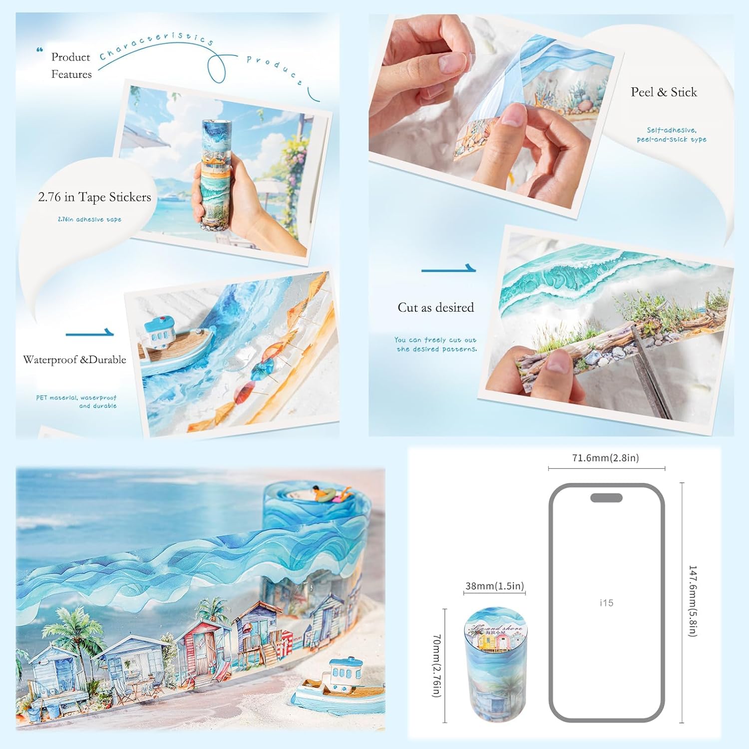 - Unique Design:These decorative tape stickers are designed with waves,shells,seagulls,starfish,coconut trees,cottages and so on.Coastal themed tape stickers,very fresh and dreamy