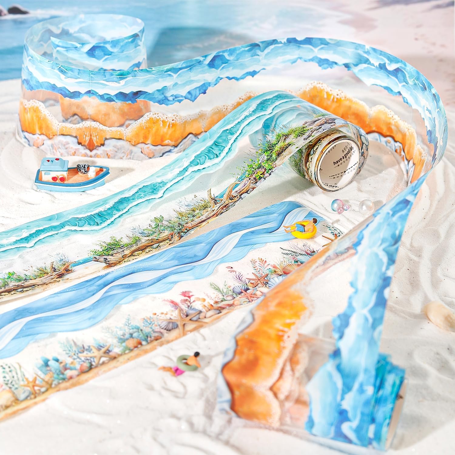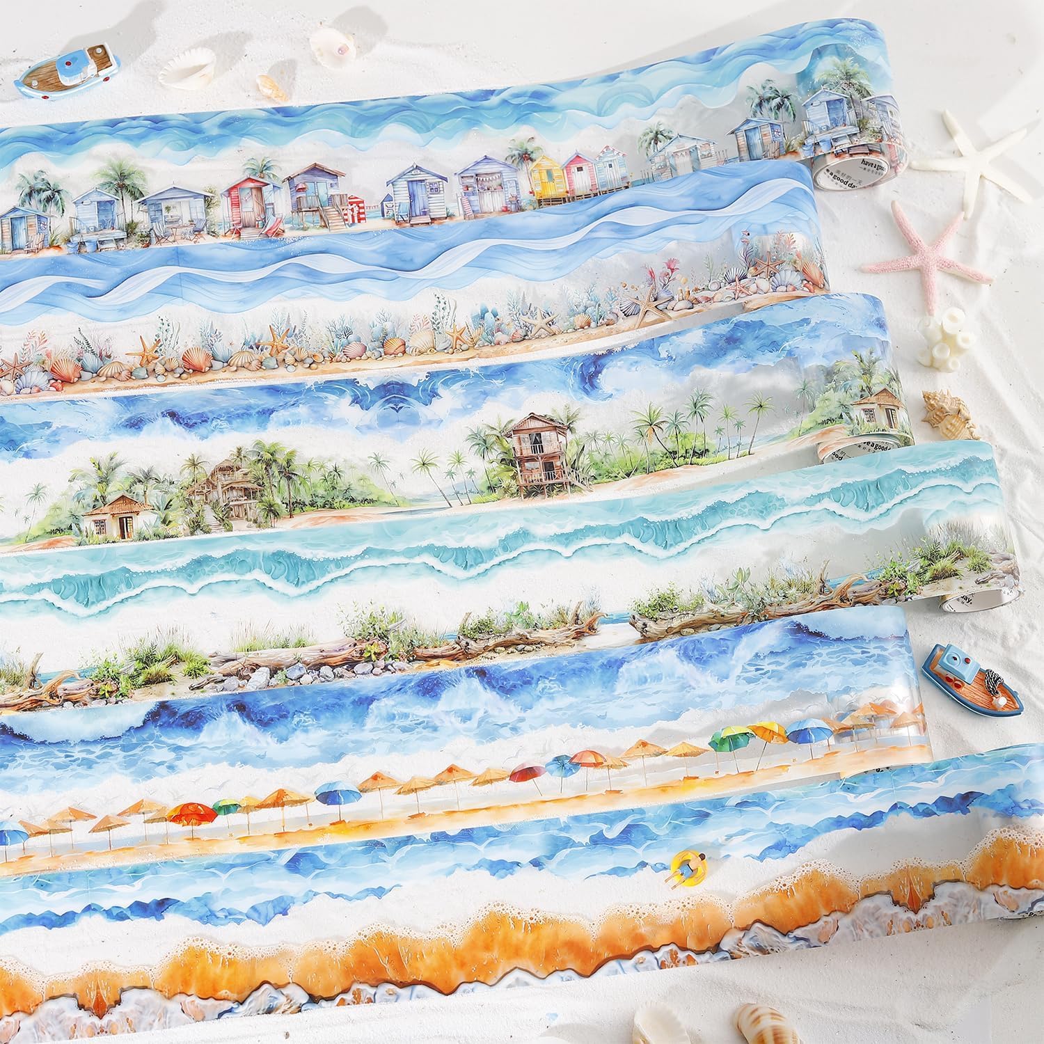 6 Rolls PET Tape Stickers for Journaling,Ocean Washi Tape Stickers for Scrapbook Supplies,Junk Journal,DIY Craft,Painting(Coast)