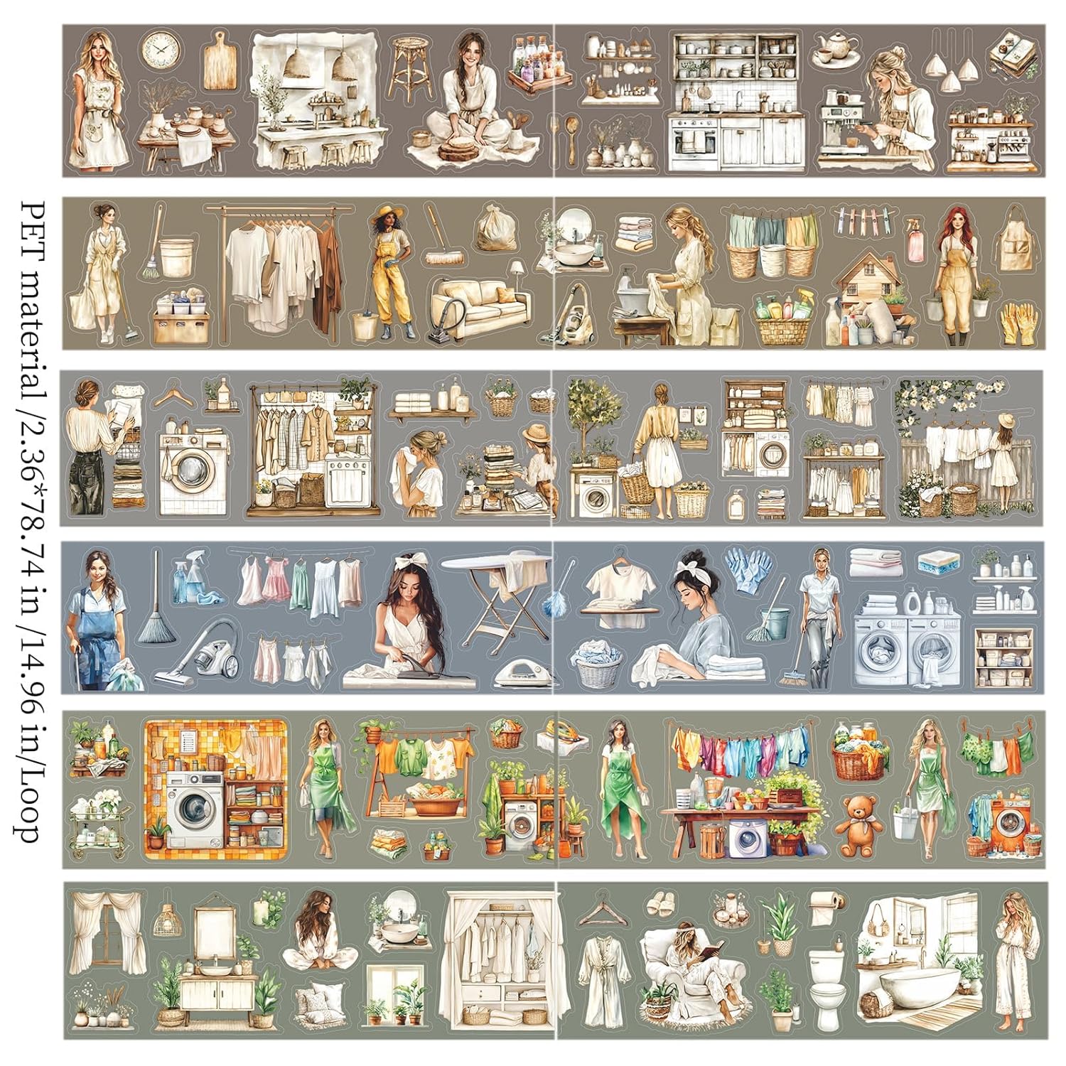 - Daily Theme Design:With weekends daily life theme,6 rolls tape stickers present laundry, cleaning, leisure and other scenes of life