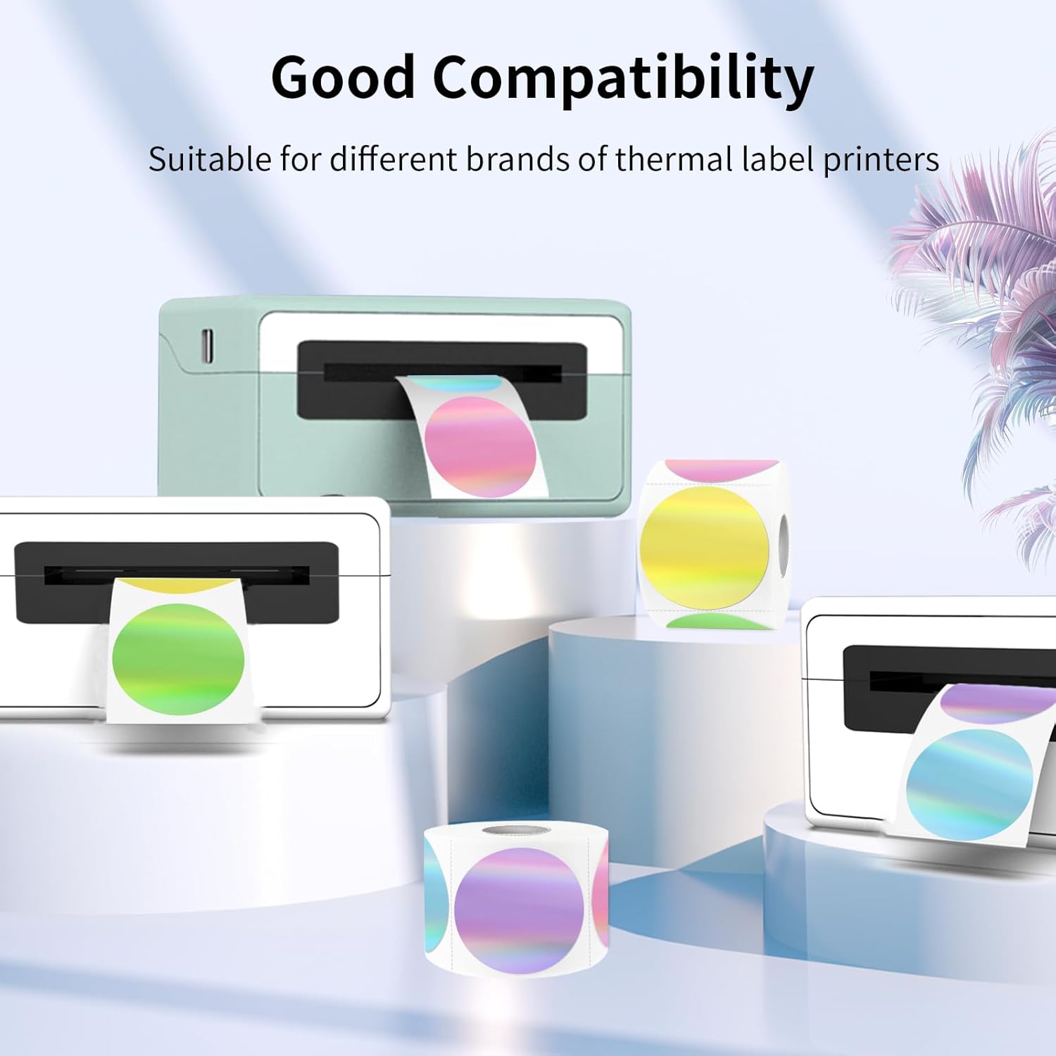 - Round Holographic Thermal Sticker Labels: Printed on rainbow metallic vinyl, the color of the surface of the sticker can be changed under the light with the move, which is beautiful and charming! Our holographic stickers offer an amazing visual experience like and leave a remarkable impression