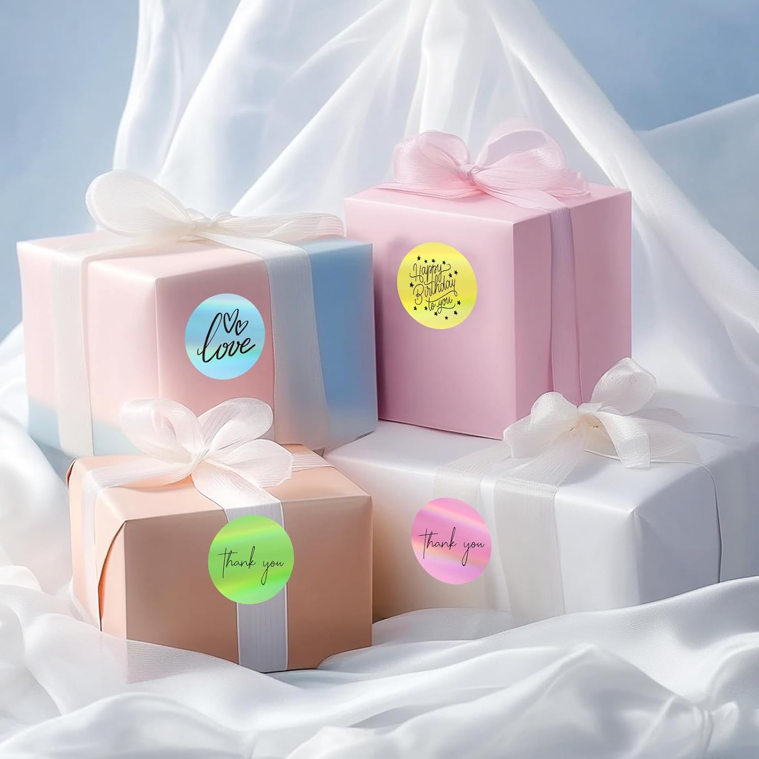 - Make your brand and products stand out with captivating hologram labels! and they are more than just ordinary stickers. The rich, vivid, and lively colors will enhance your packaging and attract everyone's interest. The stickers are widely applied on gift wraps, greeting card stickers, thank you card envelopes, flower bouquets, packaging bags, candy bags, wedding favors, scented bath soaps, wine bottles, and jars, etc