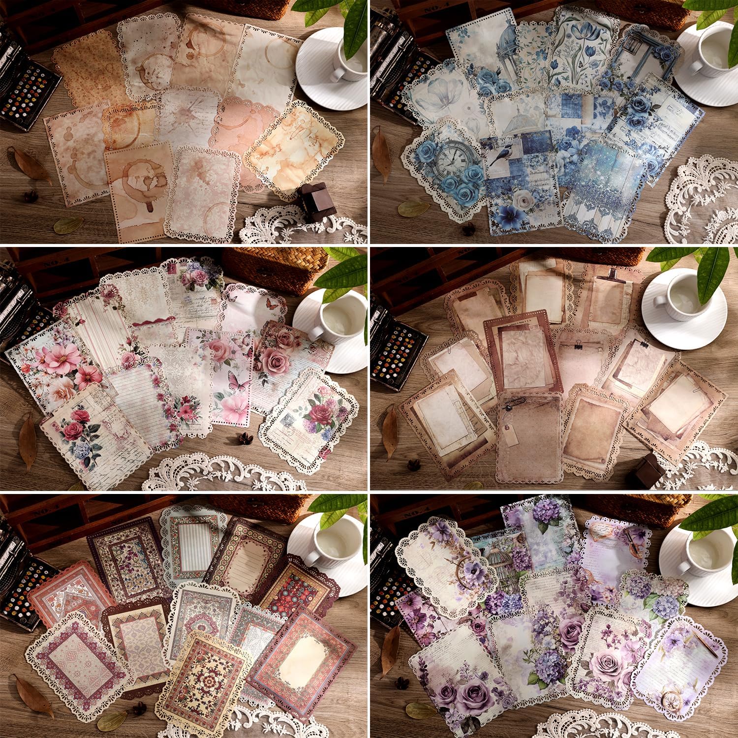 66 Sheets Lace Edged Scrapbook Paper Set, 6 Packs Vintage Decorative Paper Scrapbooking Supplies for Letter Writing Background Stationery Ephemera for Junk Journaling, DIY Art Collage 4.9x6.9 IN