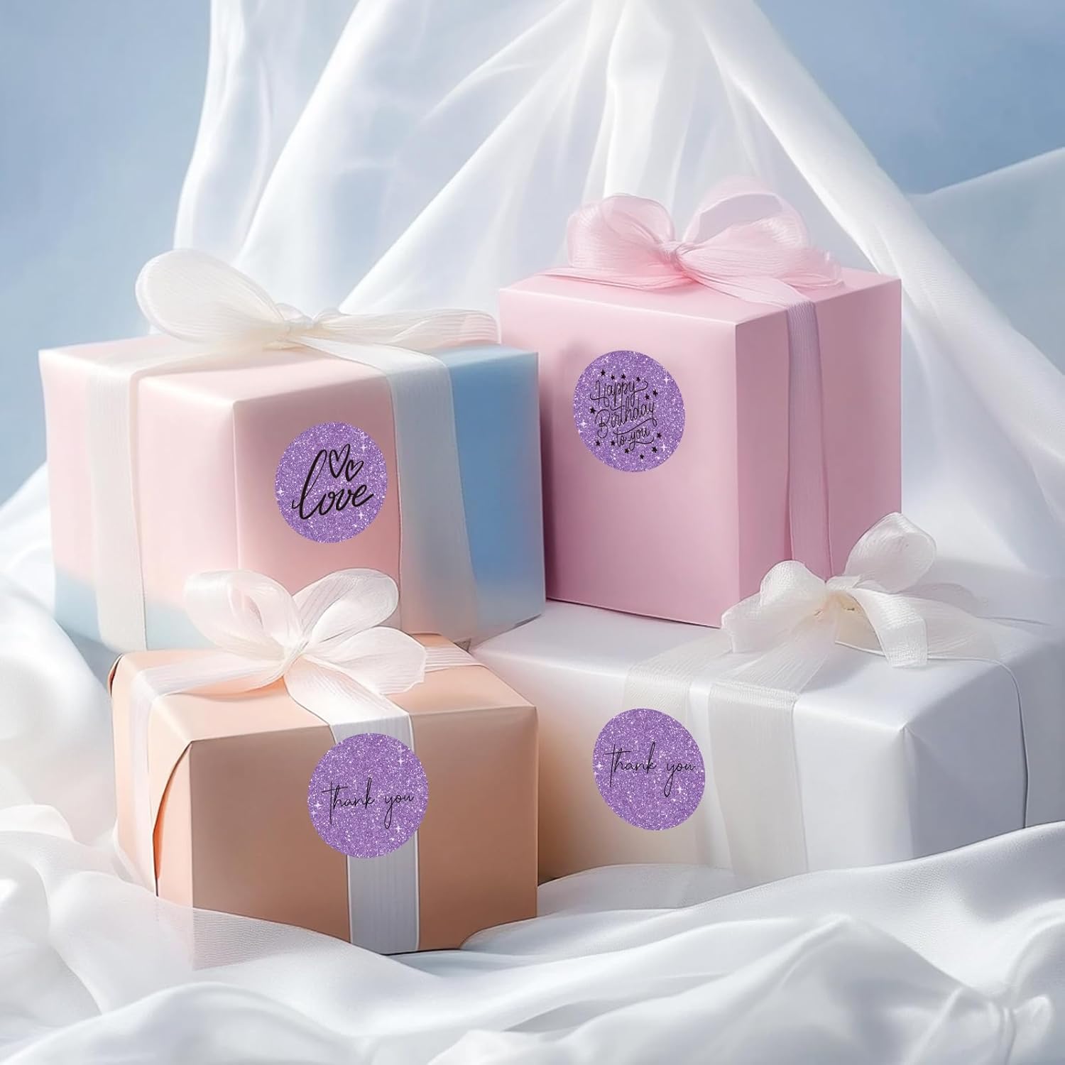 1.5" Holographic Direct Thermal Label Stickers, Round Printable Thermal Printer Sticker Labels for Gift Wrapping, Self-Adhesive- Glitter Purple