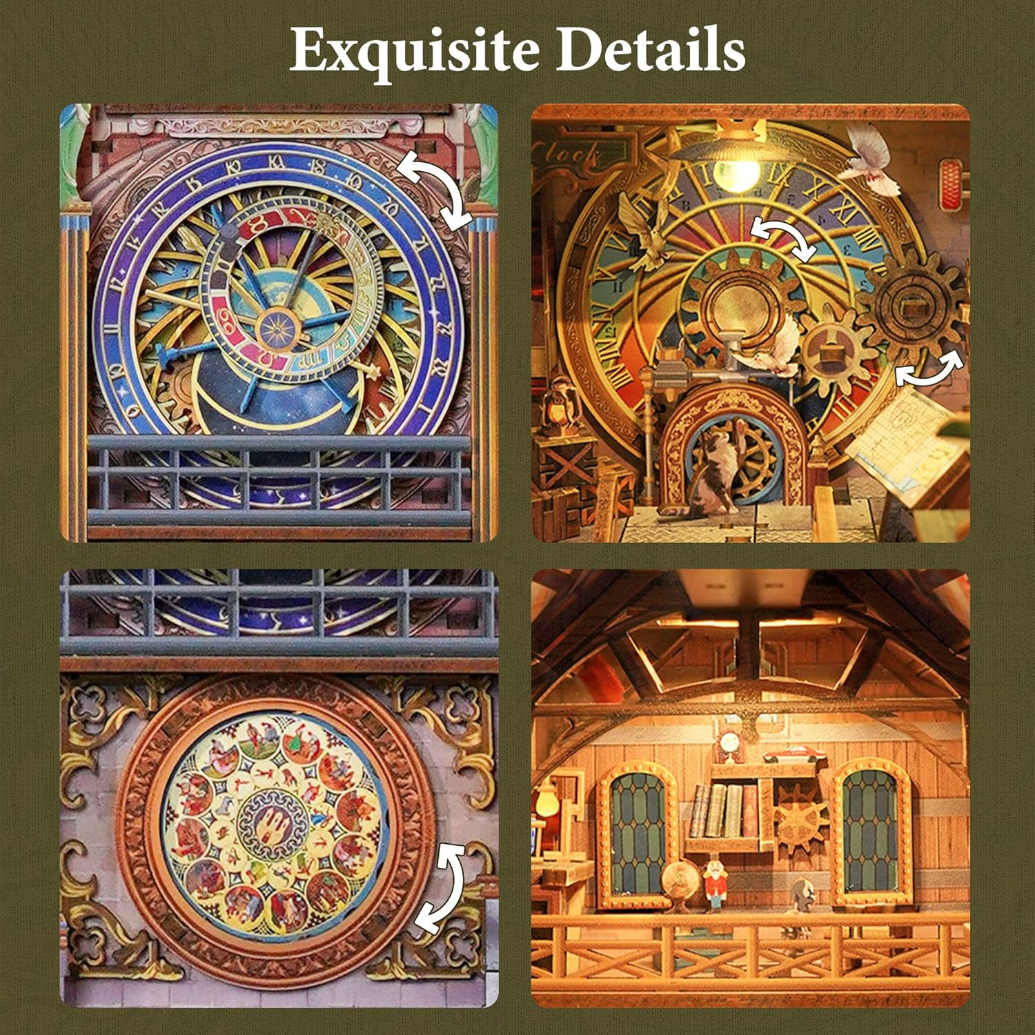 - Clock Tower Book Nook Kit: The bells from the Middle Ages ring out from the corner of Prague Square. Astronomical clock dials imprint the paths of the stars, mechanical hands indicate the change of time, a magnificent ritual brought about by gears.