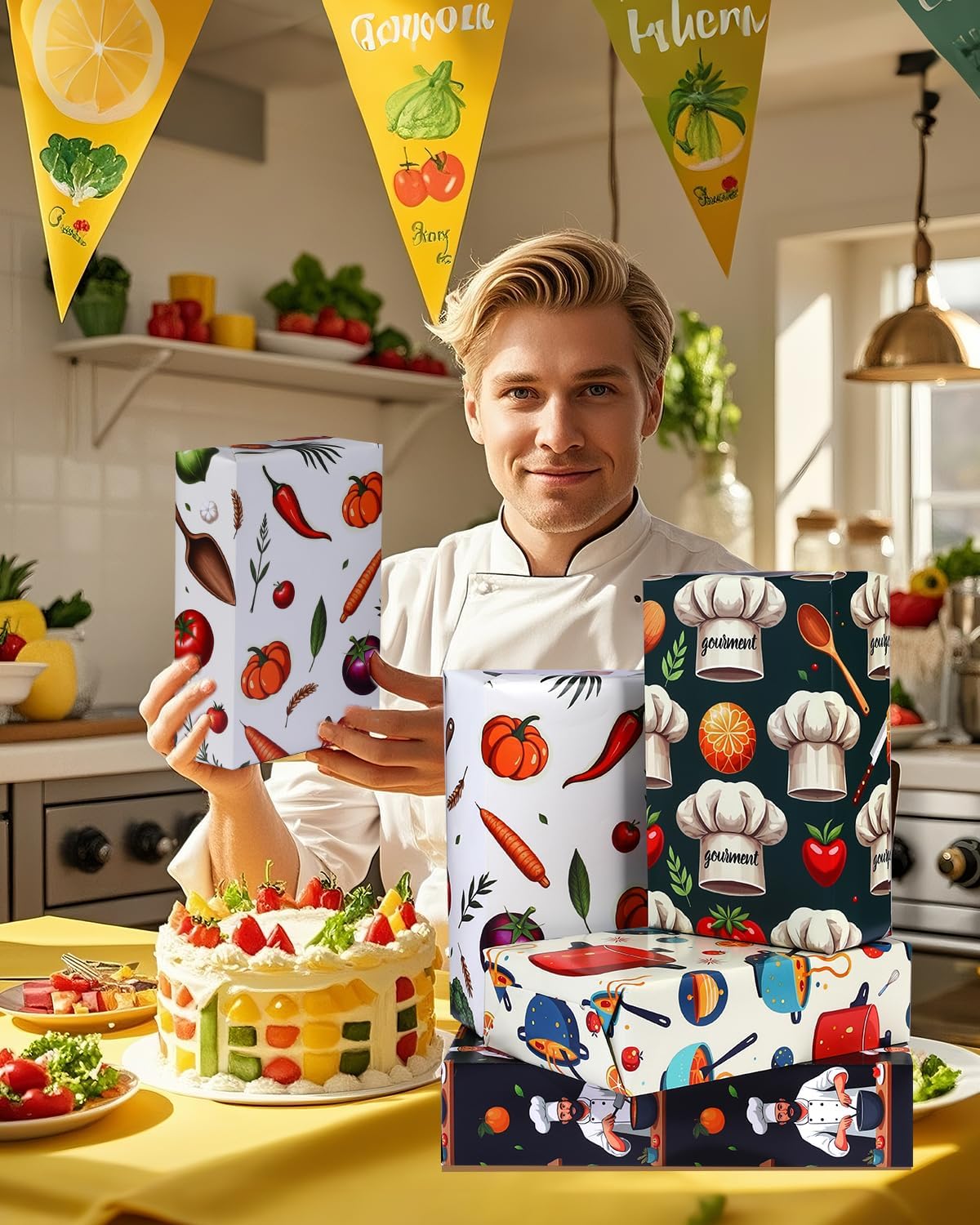 - PACKAGE INCLUDES: This charming cooking-themed wrapping paper set includes 12 sheets of delightful wrapping paper, perfect for wrapping gifts, crafting, or adding a touch of culinary flair to any occasion. Wrap your presents with a dash of cooking joy using our unique design!