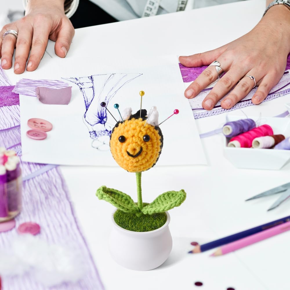 - Cute Unique Pincushion: the pin cushion is designed into the shape of a potted bee, bright colors and vivid appearance make it easy to notice, and also adds a little fun to the sewing process. Not just cute—it also keeps your pins and needles organized, secure, and within easy reach