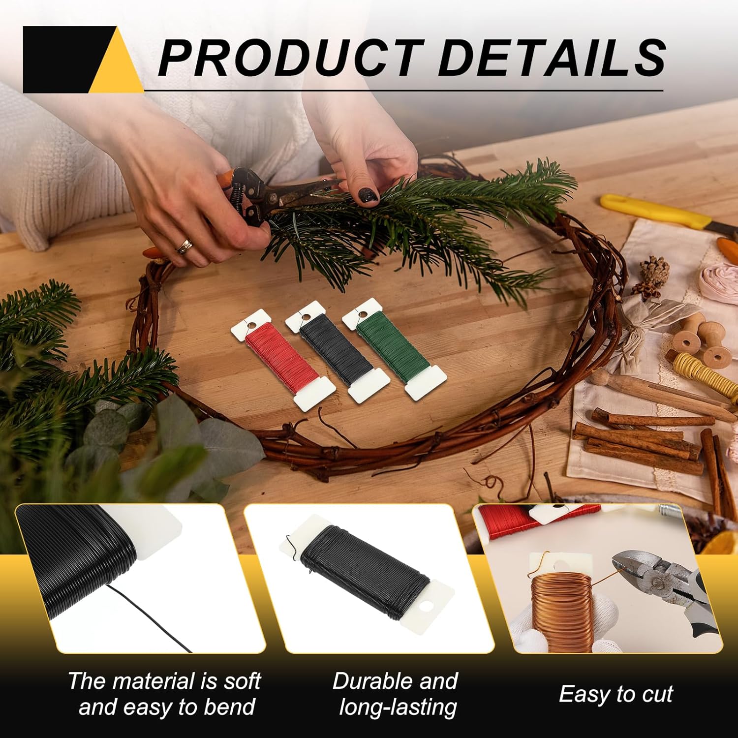 - This floral wire is suitable for various holiday decorations, such as making Christmas wreaths, hanging Christmas ornaments, and tying bouquets to help you secure the position of fresh flowers and prevent them from scattering. It can also be used to create exquisite potted plant art, bows, crafts, and more.