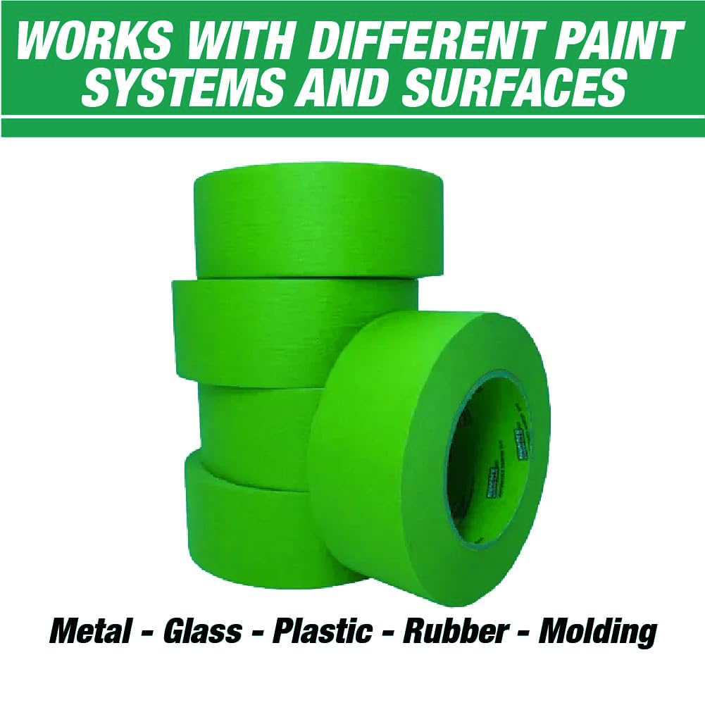 LAUCO DINOGREN High Performance Automotive Masking Tape – 2 Inch x 60 Yards (5 Rolls) – Green Tape for Car Paint, Body Shop Use, Clean Removal, Heat & Water Resistant, Multi-Surface Crepe Backed