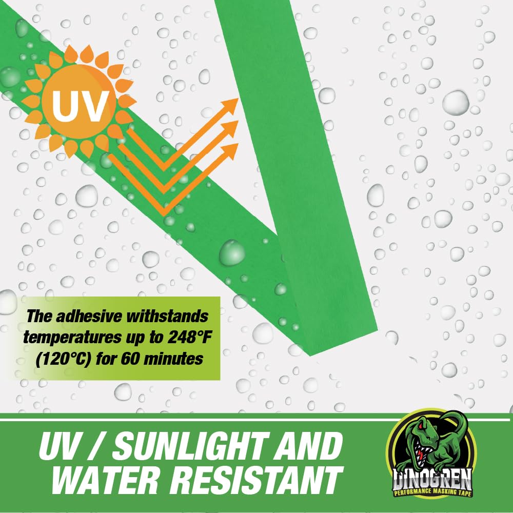 LAUCO DINOGREN High Performance Masking Tape for Car Paint, Heat & Water Resistant, Multi-Purpose Green (1.5 in x 60 yd, 6 Rolls) – Clean Removal, Auto Body Shop, Industrial Use, Crepe Backed*