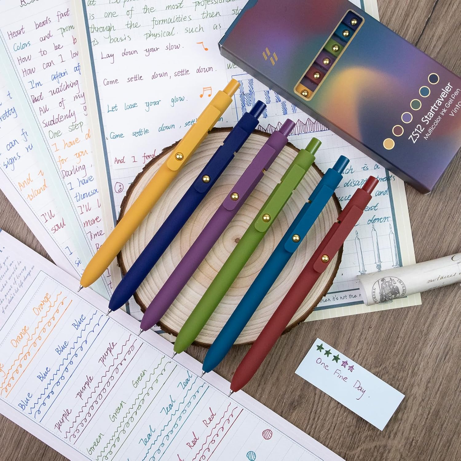 6 Pcs Color Pens for Journaling 0.5mm Fine Point Colored Gel Ink Pen, Smooth Writing Colorful Pens for Note Taking, Gift Set for Women & Men (6 Pcs Vintage Gold)