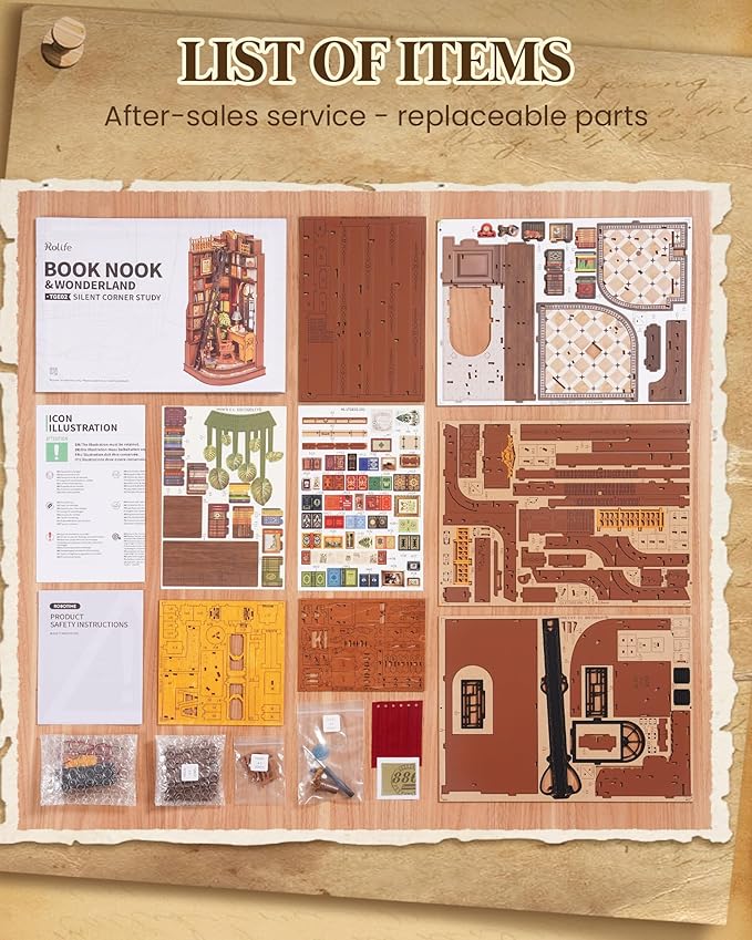 - 【3-Hour Assembly】 This book nook features a 100% wooden snap-fit design without the need for any glue. We want you to enjoy the fun of DIY assembly without worrying about the difficulty. This dollhouse booknook perfectly embodies this desire.