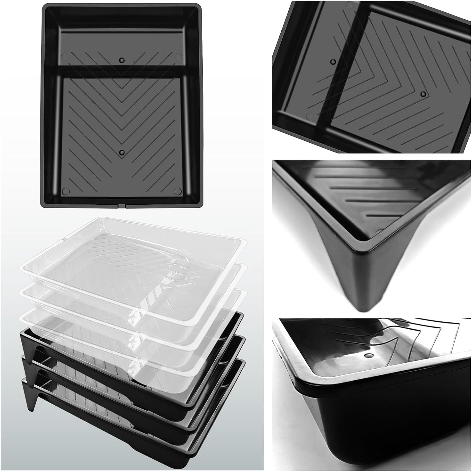- Get Complete Paint Tray Set: Includes 3 sturdy reusable black plastic paint trays and 3 matching clear disposable liners for mess-free painting.