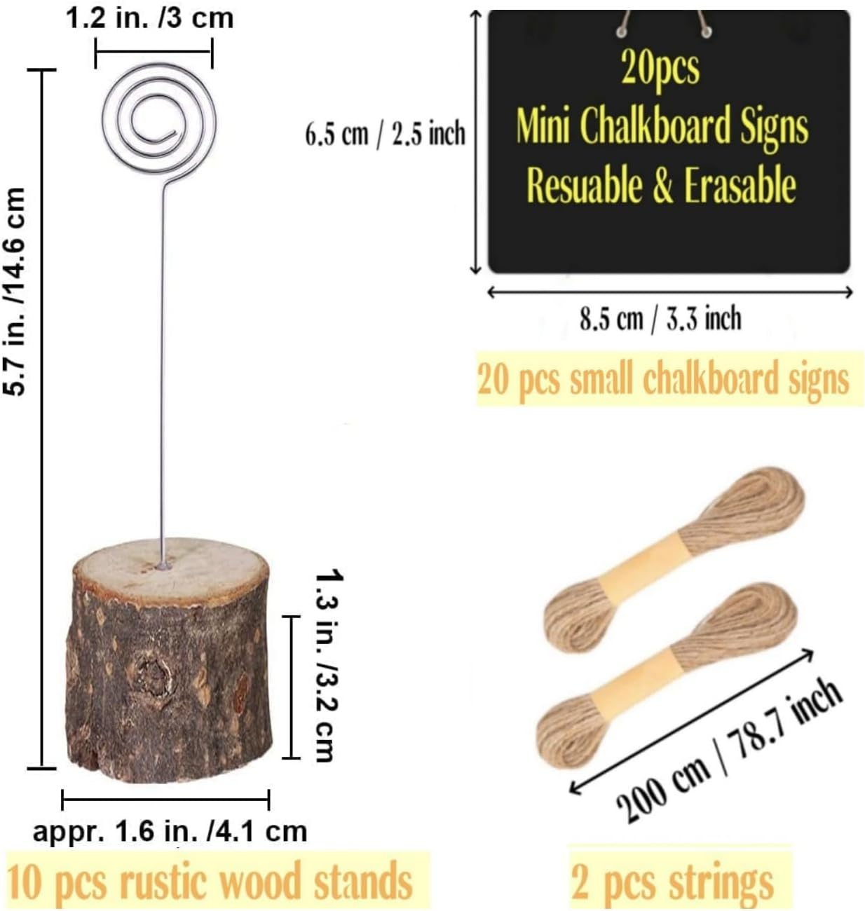 - COMPLETE SET: Includes 20 mini chalkboard signs, sturdy 10 wooden stands, 12 chalk markers, 2 strings and 32 blackboard stickers, ready to use right out of the box.