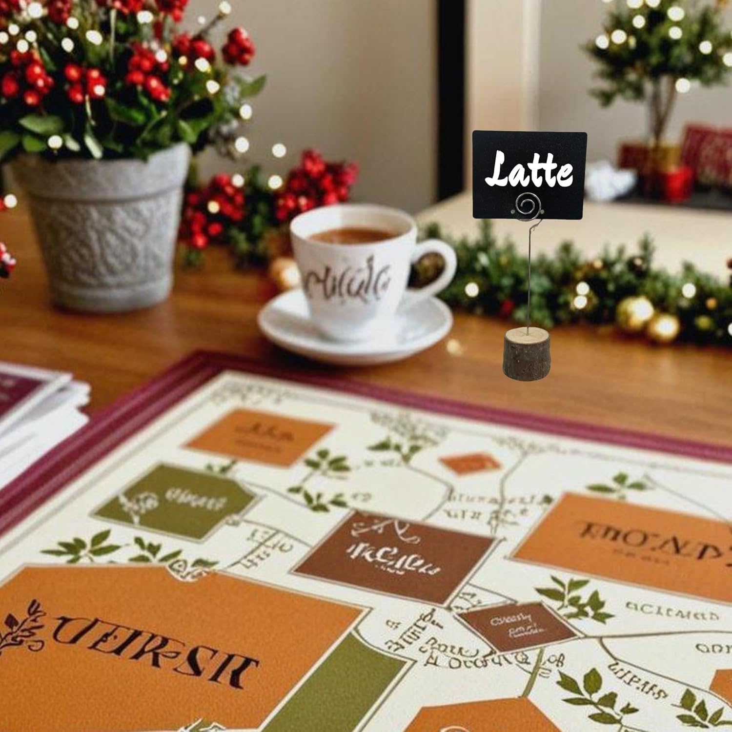 - VERSATILE USE & 3 WAY TO DISPLAY: Perfect for labeling food items at buffets, marking table numbers at weddings, or creating elegant place cards for special events, you can use the base and blackboard logo for desktop display, hang a rope through the blackboard for display, or use the base alone with photos or cards, effortlessly switch between chalkboard writing and card labeling for different presentation needs.