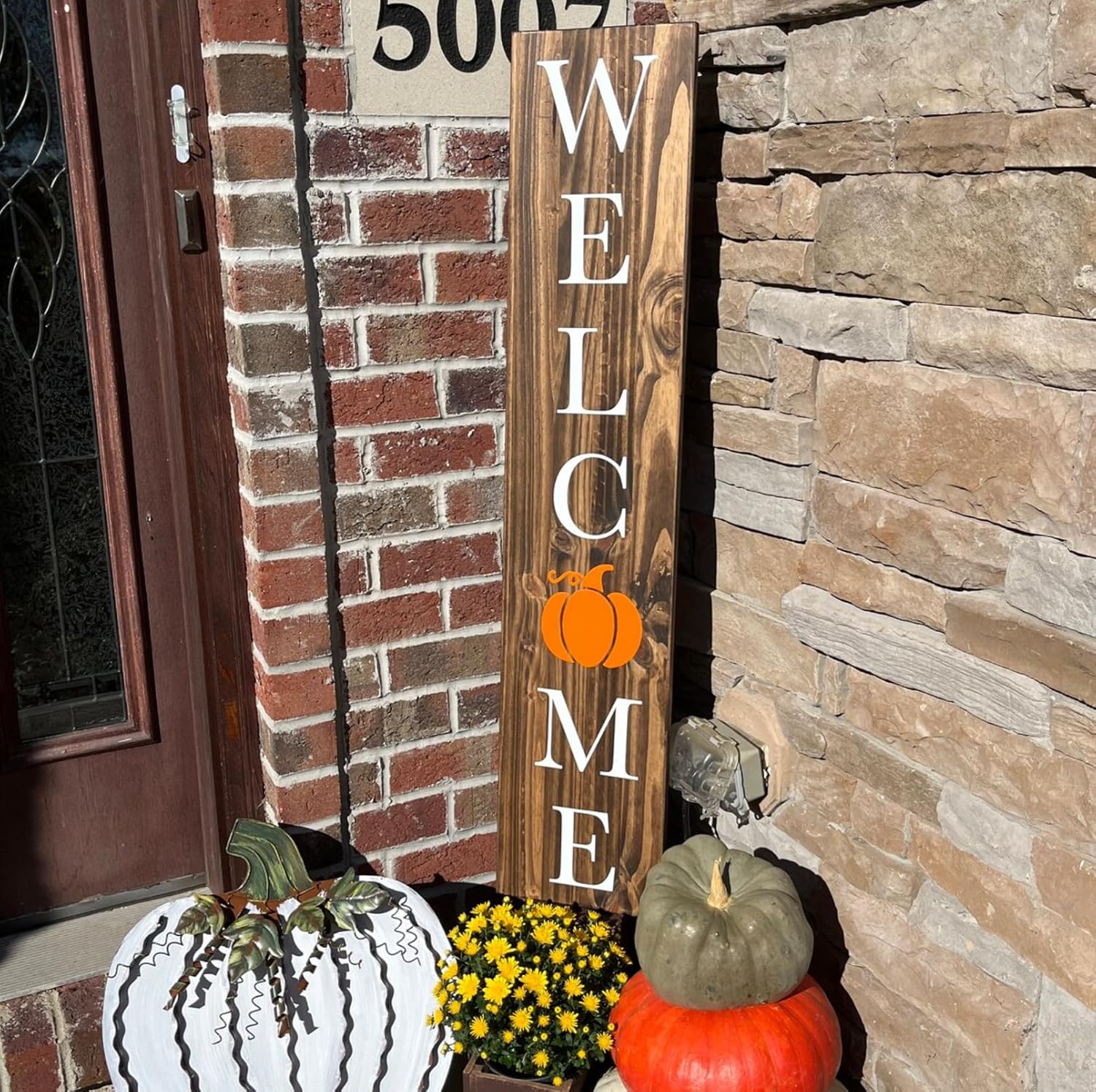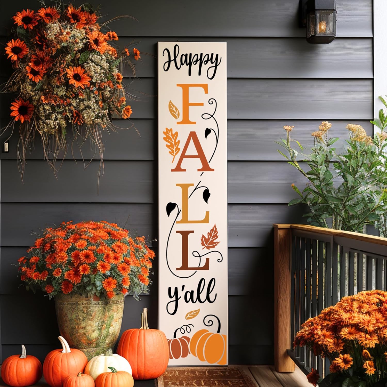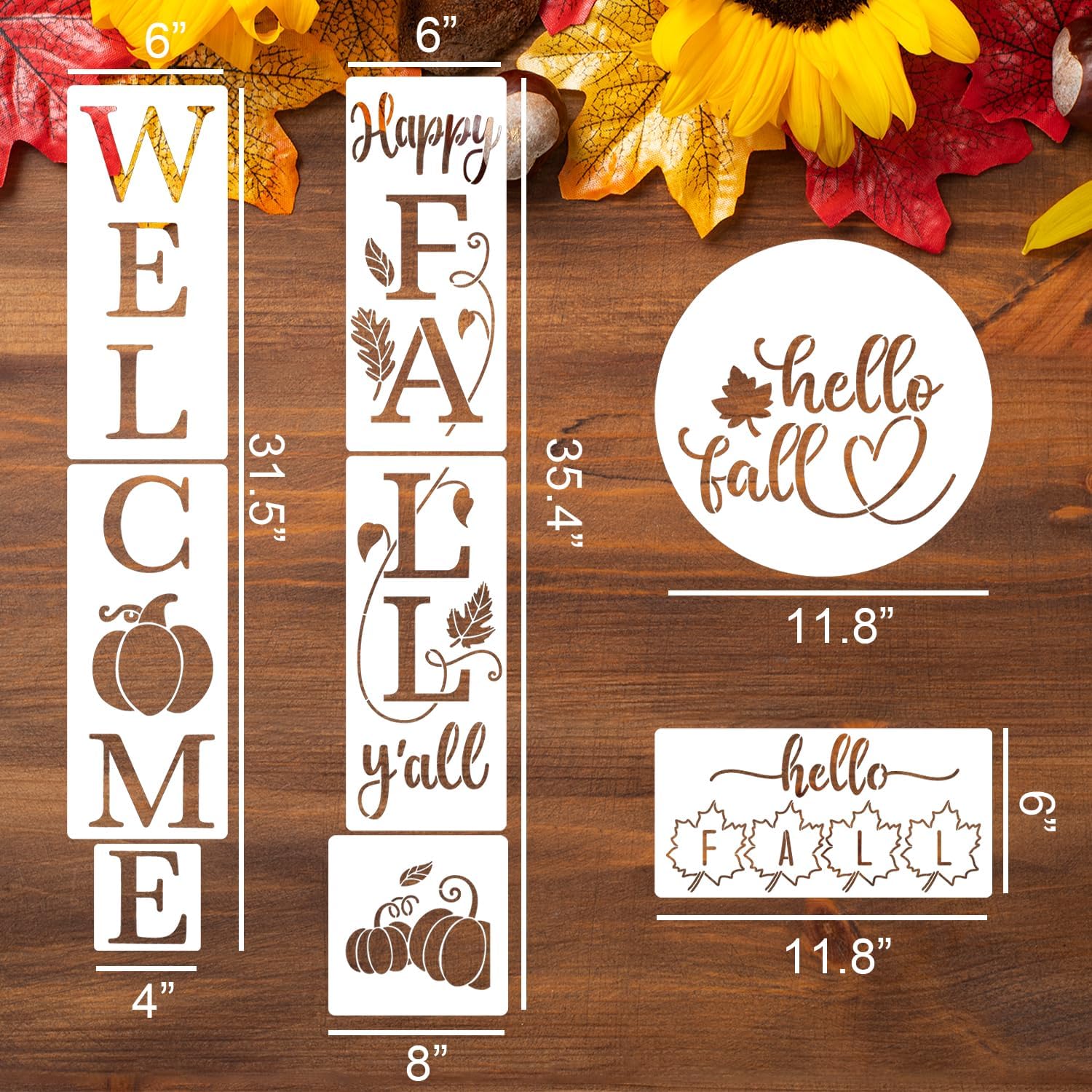 - Fall Porch Stencils:You can make “WELCOME” sign in 31.5X6inches and “happy FALL y’all” sign in 35.4x8inches.The round and long fall stencils are suitable for decorating 12inch round fall wreath.
