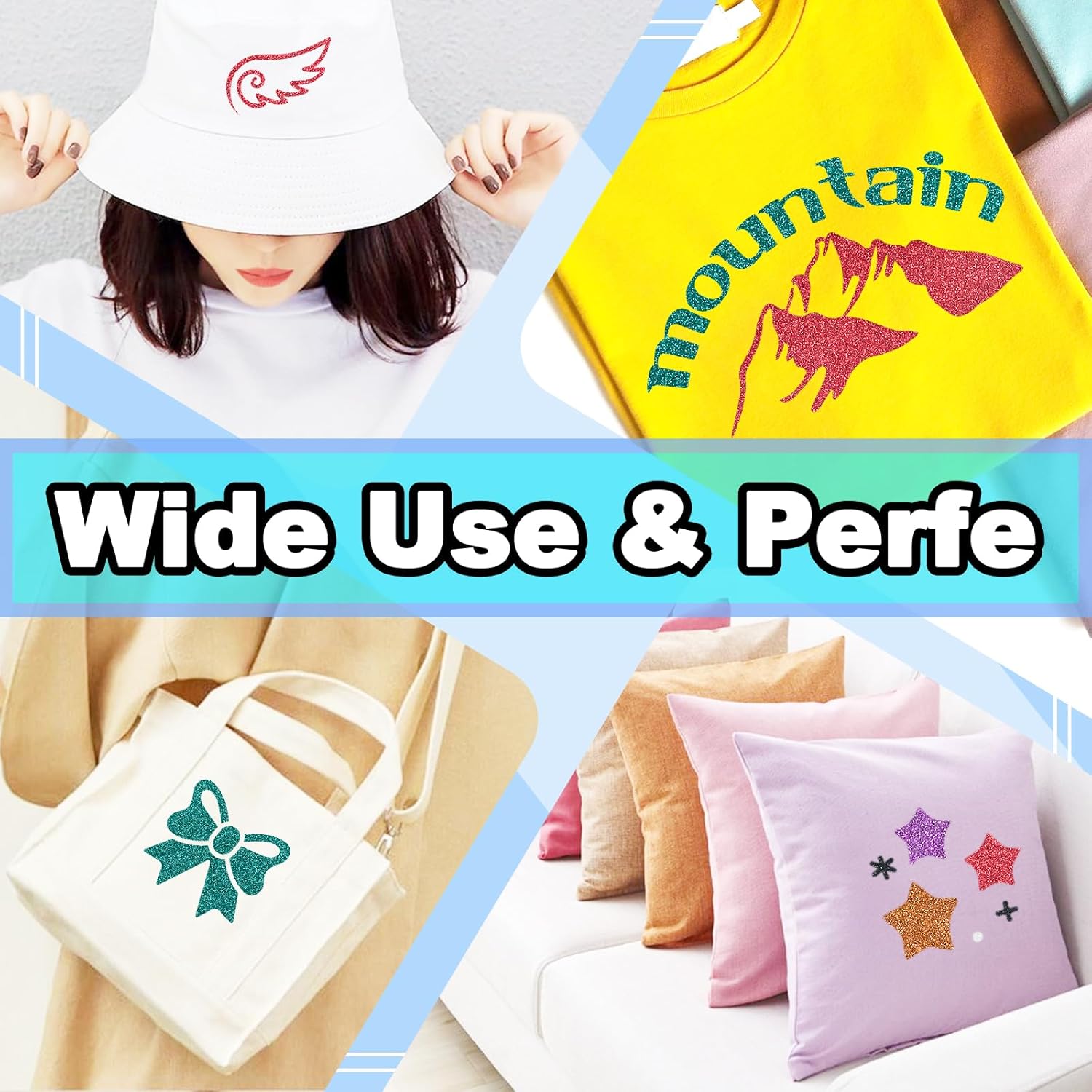 - Versatile Material Compatibility: Perfect for customizing a variety of fabrics like cotton, polyester, and blends, our glitter heat transfer vinyl is excellent for creating custom designs on hats, aprons, and pillows