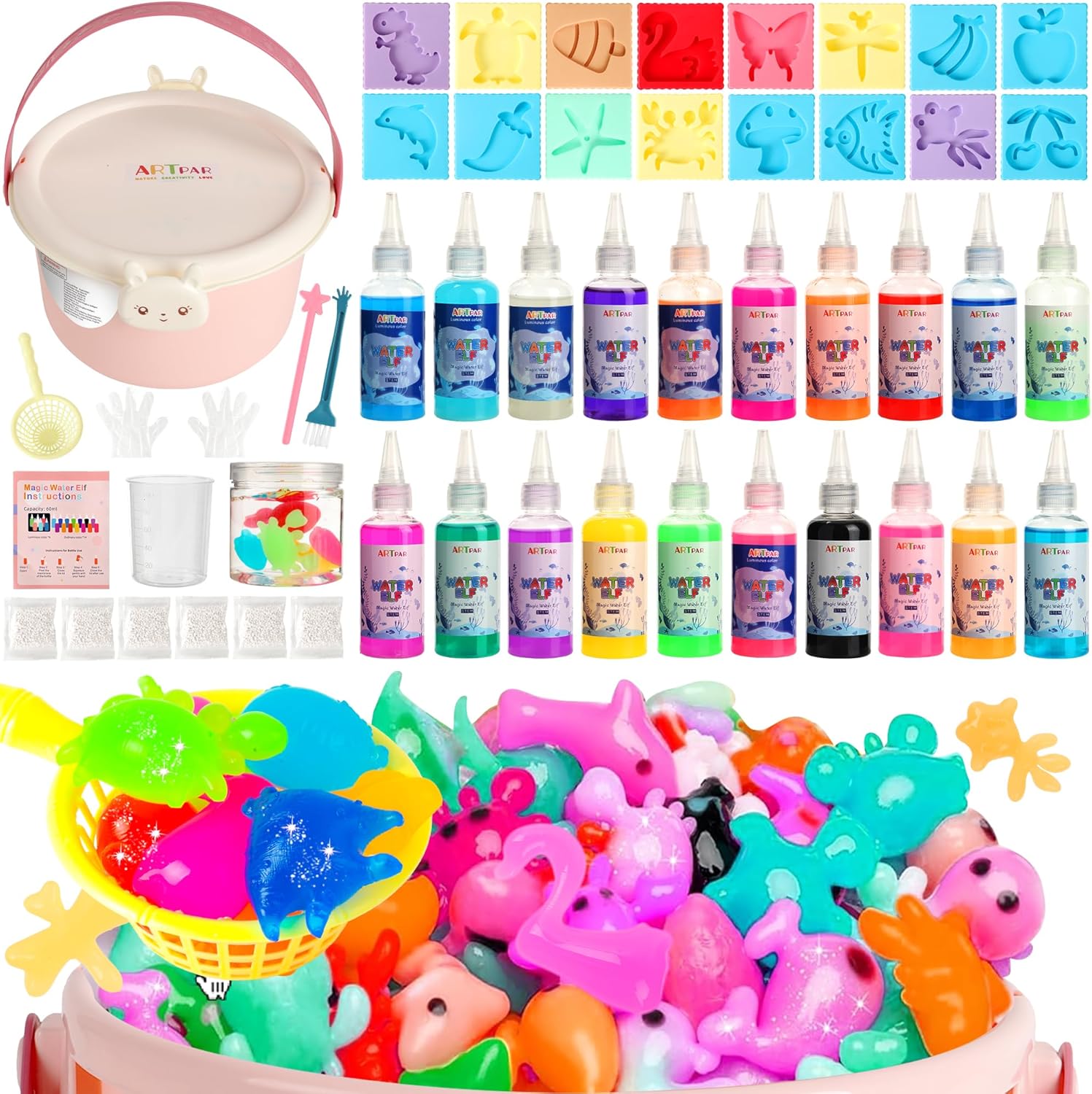 ARTPAR Water Elf Magic Gel Kit - 20 Colorful Gels + 16 Fantasy Molds - Non-Toxic Sensory Toys for Kids - Creative Arts & Crafts Project - Birthday Gifts for 5 6 7 8 9 10 Year Old Girls Boys