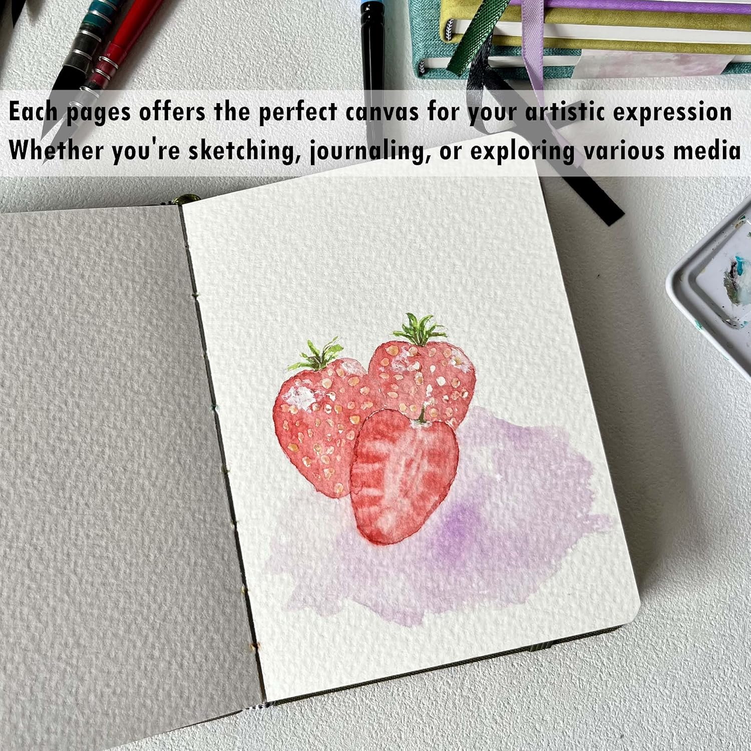 tumuarta 100% Cotton Watercolor Journal Sketchbook, Cold Press, 7.5x5 in, 140 LB, 300GSM, Acid Free, 24 Sheets,48 Pages, Watercolor Journal for Use As Travel Notebook and Mixed Media Pad On The Go