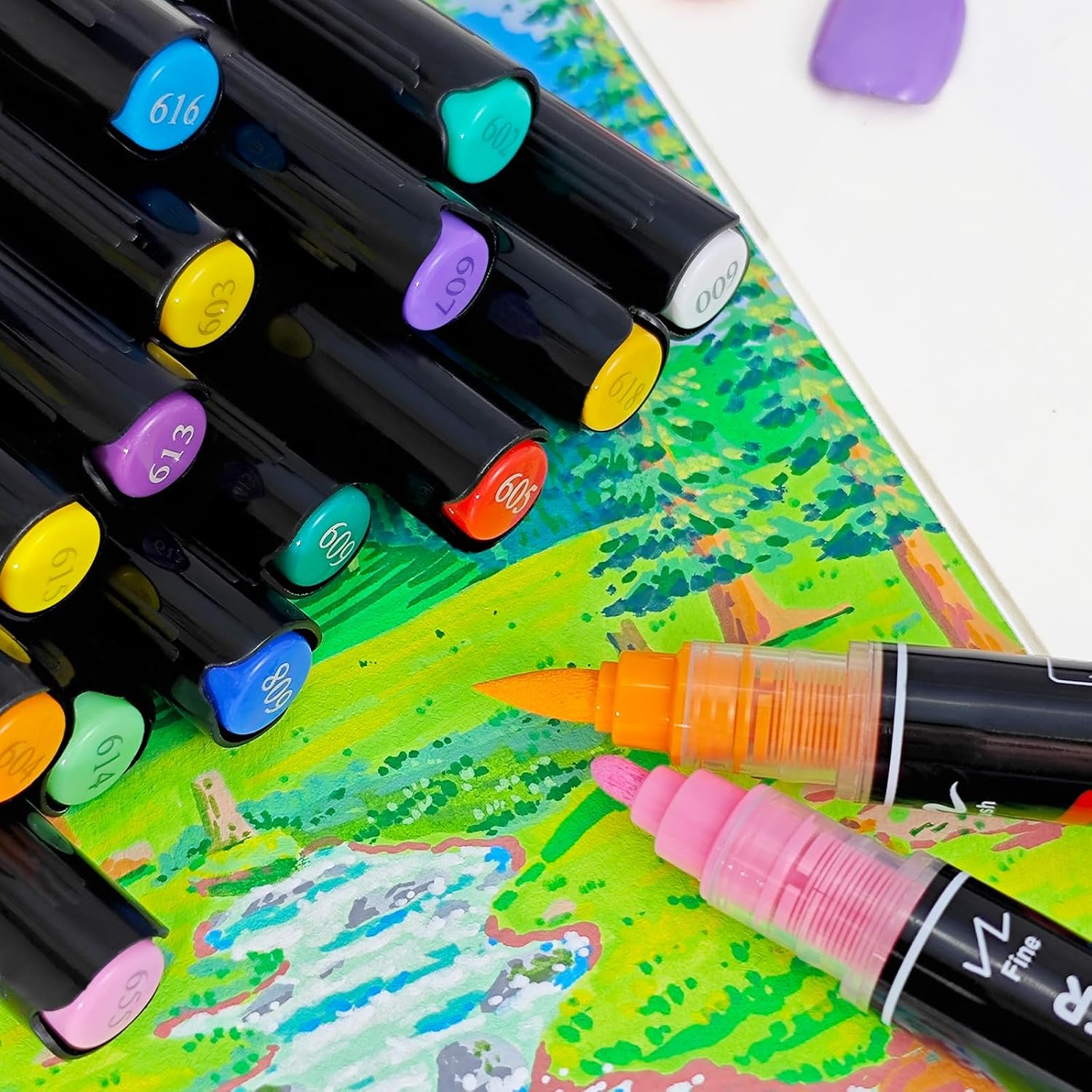 Guangna 60 Colors Acrylic Paint Markers, Dual Tip Paint Markers Pens Set with Soft Brush Tip, Multifunctional Fine Tip Markers for Wood, Canvas, Rock Painting,Glass,Diy Crafts Art Supplies, Waterproof