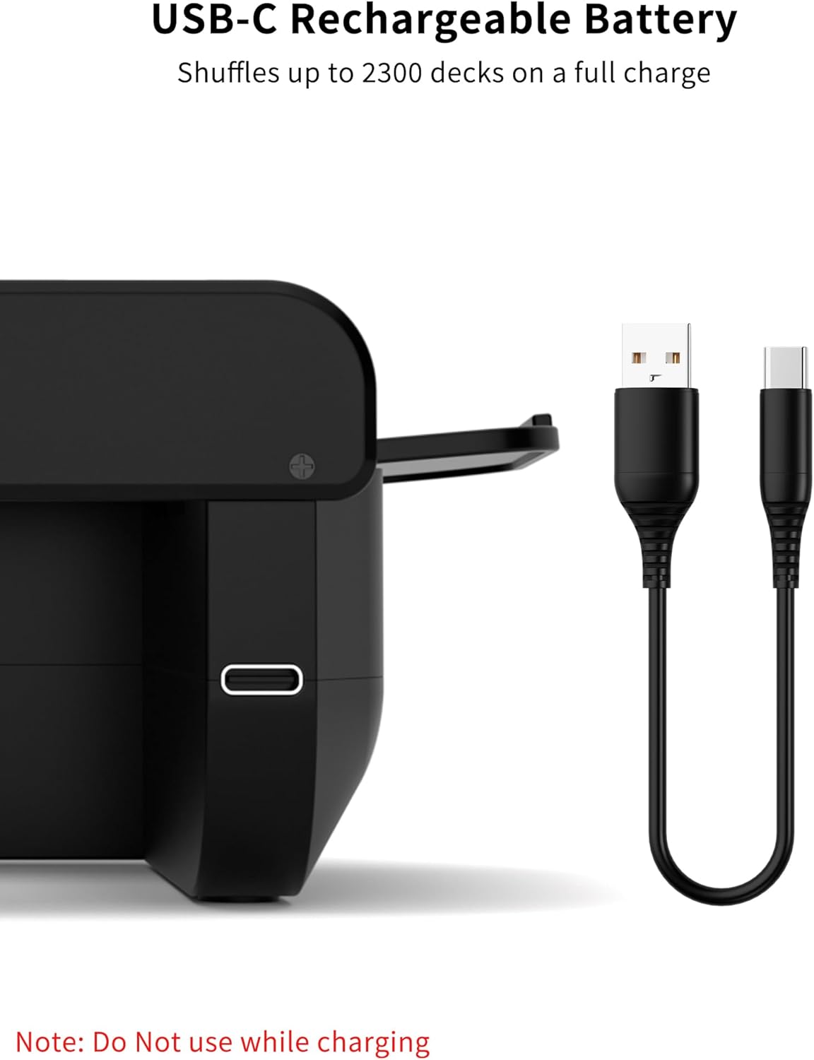 • 【USB-C Rechargeable】No AA batteries required. The built-in 2000mAh battery supports up to 2,300 shuffles per charge and fully recharges in just 30 minutes. Note: Shuffling is disabled while charging.