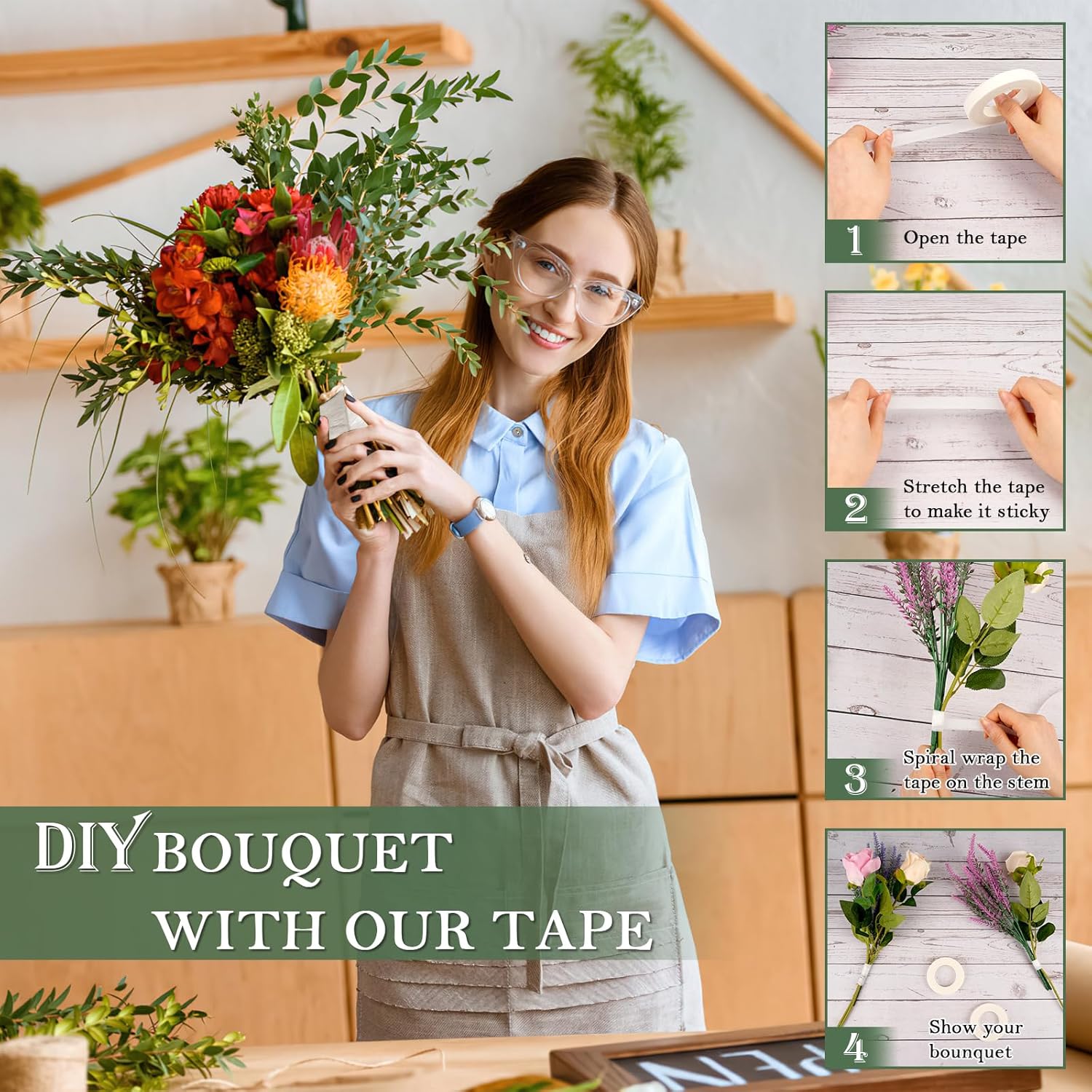 - Widely Usage: White flower tape is fit for floral decorations, wedding bouquets, flower arrangements, corsages, flower crowns, stem wrapping, present wrapping, and DIY projects