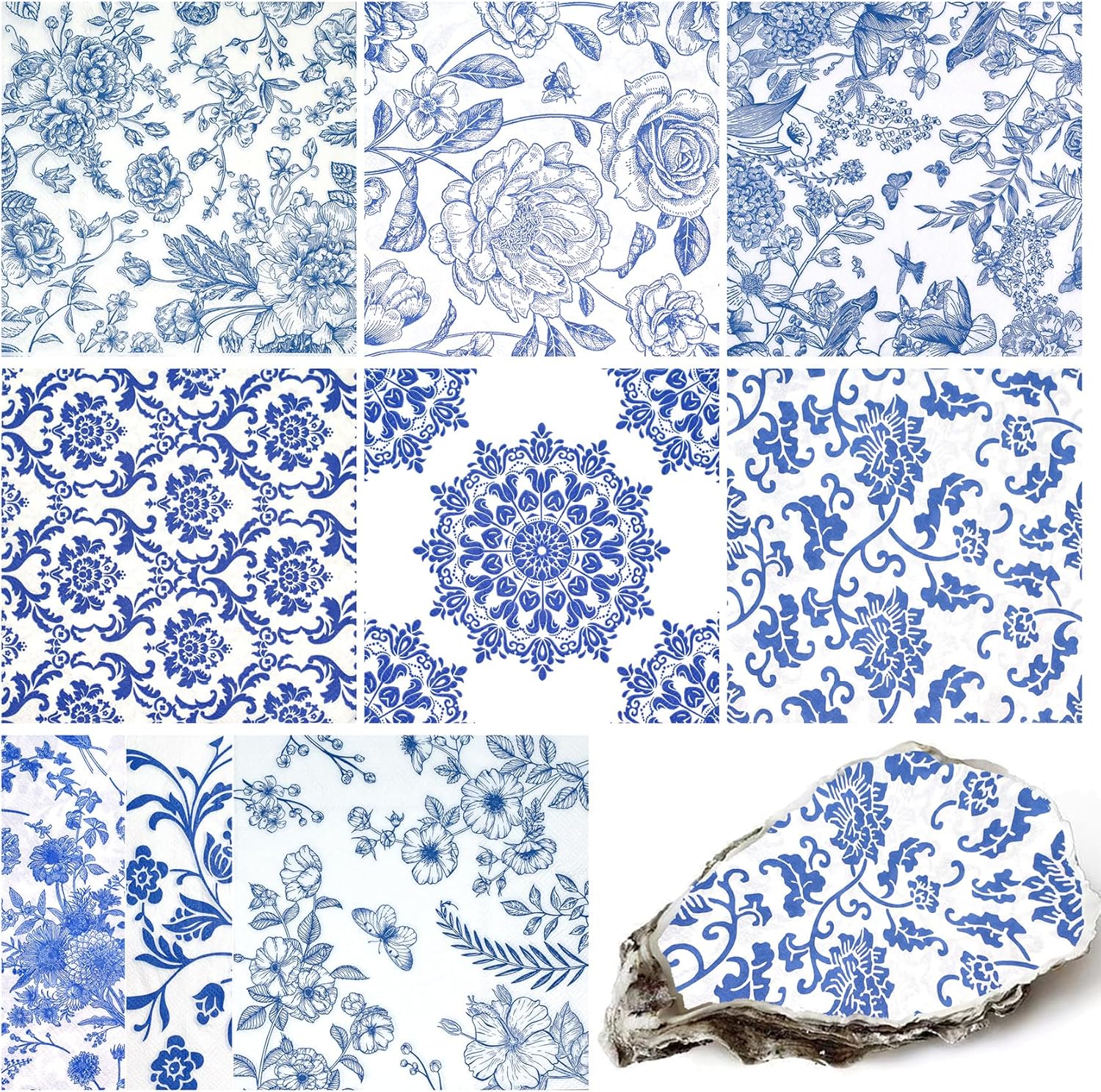 Decoupage Napkins Assorted Floral 27 Pack 9 Styles for DIY Crafting Birthday Party , Decorative Decoupage Napkins Cocktail Paper ,Each Unfolded 13 Inch (Blue Floral)