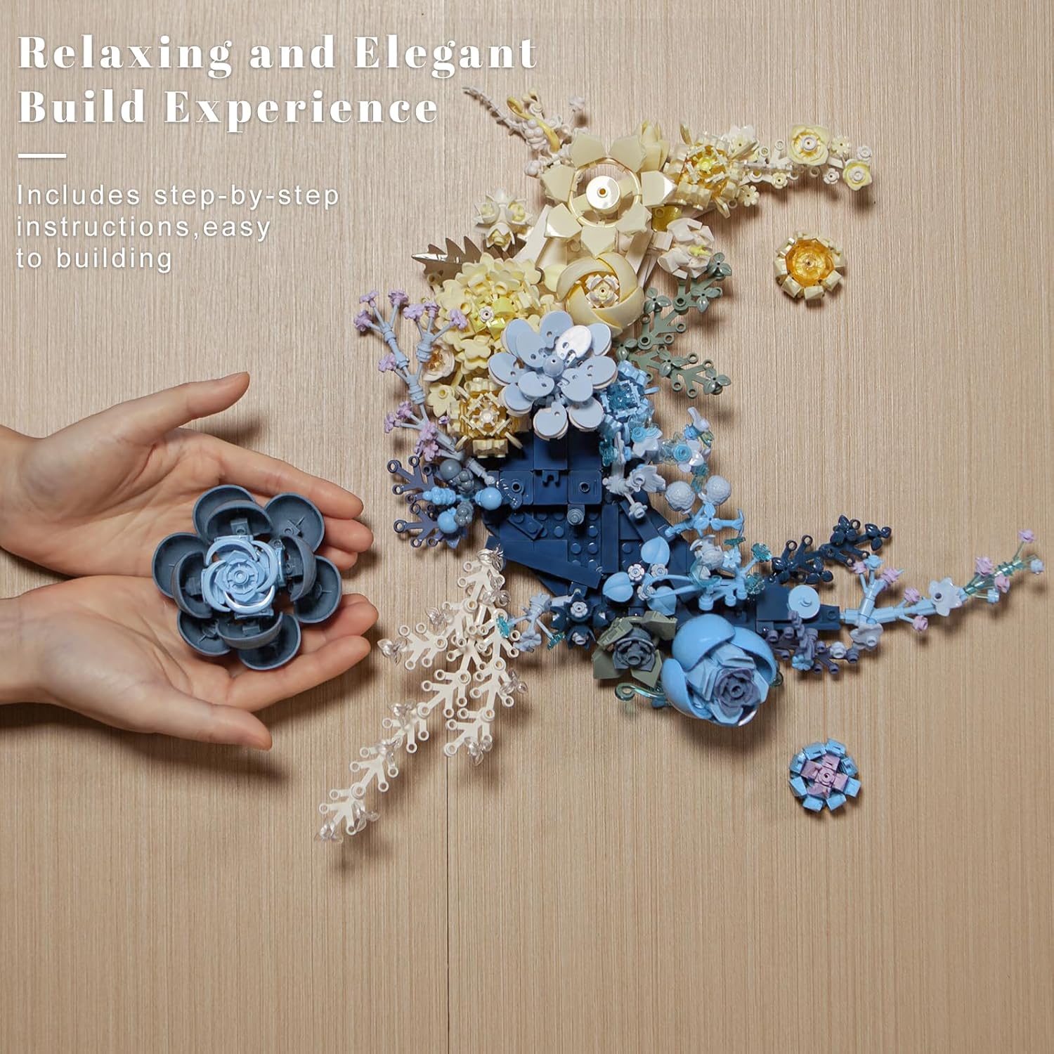- 935 Premium Quality Bricks: Build with confidence using 935 flower botanicals collection, high-quality pieces. This ideal quantity offers a satisfying challenge for teens and adults without being overwhelming. Precise fit ensures exquisite detailing for artificial flowers (including white roses & blue roses) and leaves, and blossoms