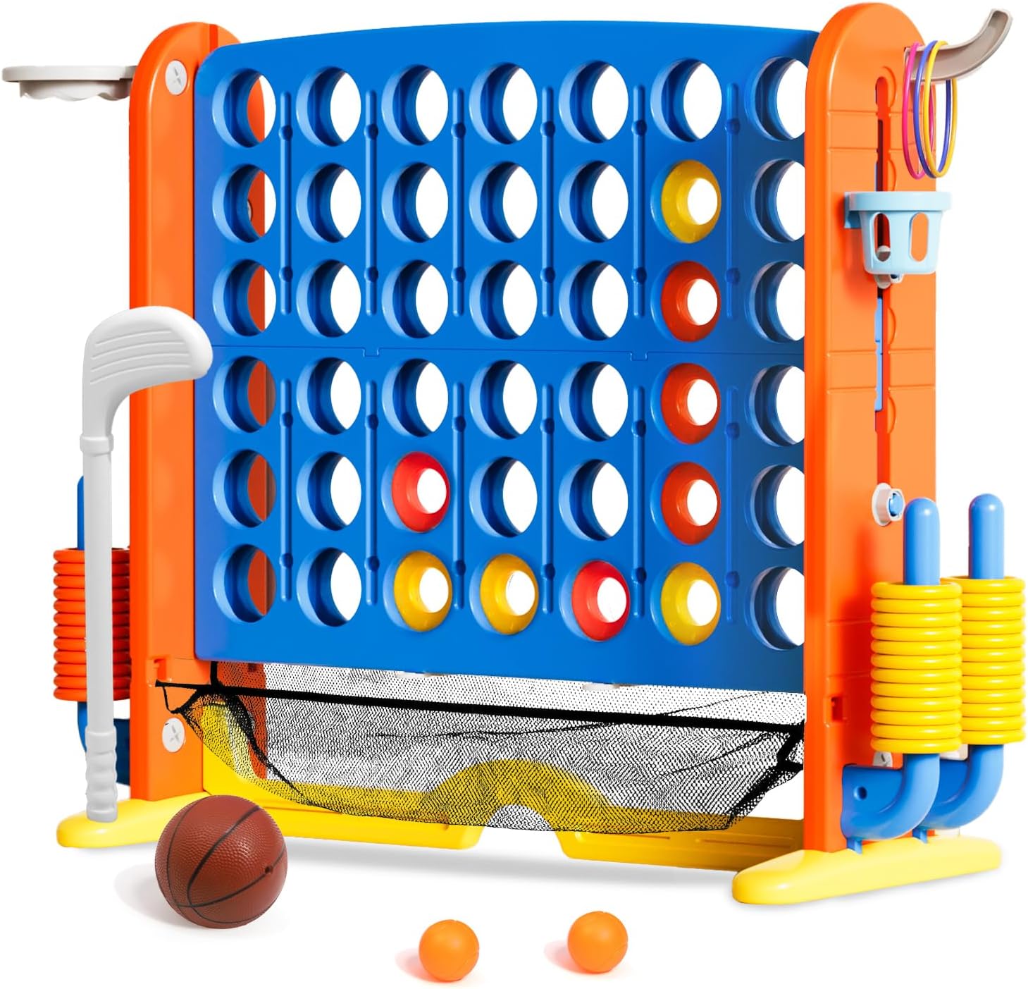- 4-in-1 Fun for Endless Play: Experience endless entertainment with our versatile giant game set! This unique multi-functional unit combines the classic thrill of Jumbo 4-to-Score with an exciting Basketball Hoop, a challenging Golf Putting Game, and a lively Ring Toss. Our distinct golf feature ensures everyone finds their favorite way to play, creating unforgettable memories for all ages and interests.