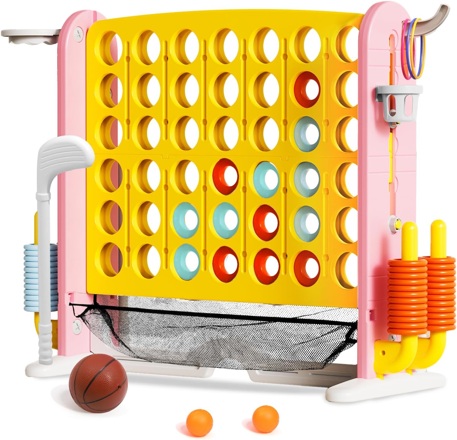 • 4-in-1 Fun for Endless Play: Experience endless entertainment with our versatile giant game set! This unique multi-functional unit combines the classic thrill of Jumbo 4-to-Score with an exciting Basketball Hoop, a challenging Golf Putting Game, and a lively Ring Toss. Our distinct golf feature ensures everyone finds their favorite way to play, creating unforgettable memories for all ages and interests.