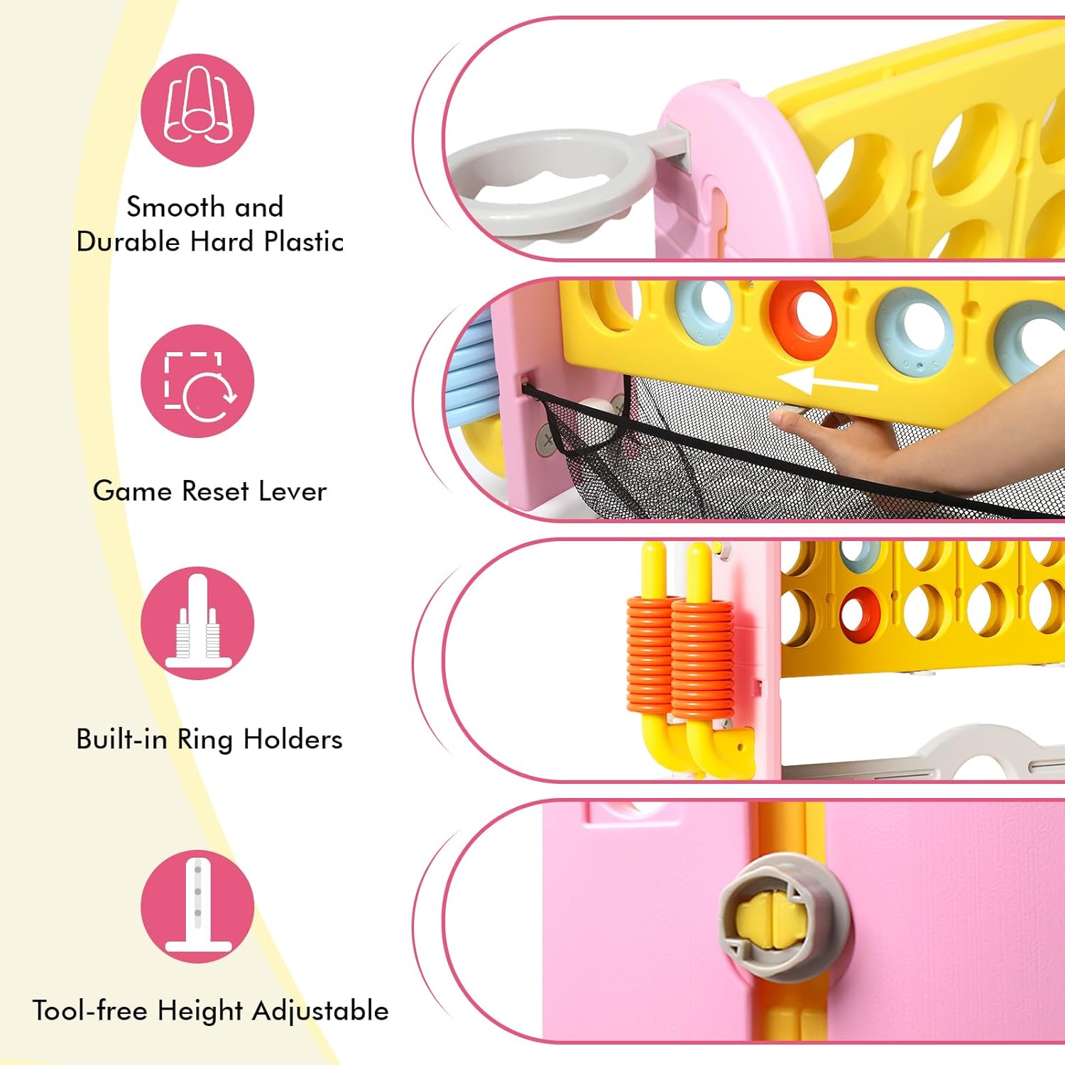• Built-in Mesh Storage for Fast Reset: Say goodbye to cleanup delays! A durable mesh net at the bottom catches falling rings, keeping all pieces organized and ready for the next round without the hassle.