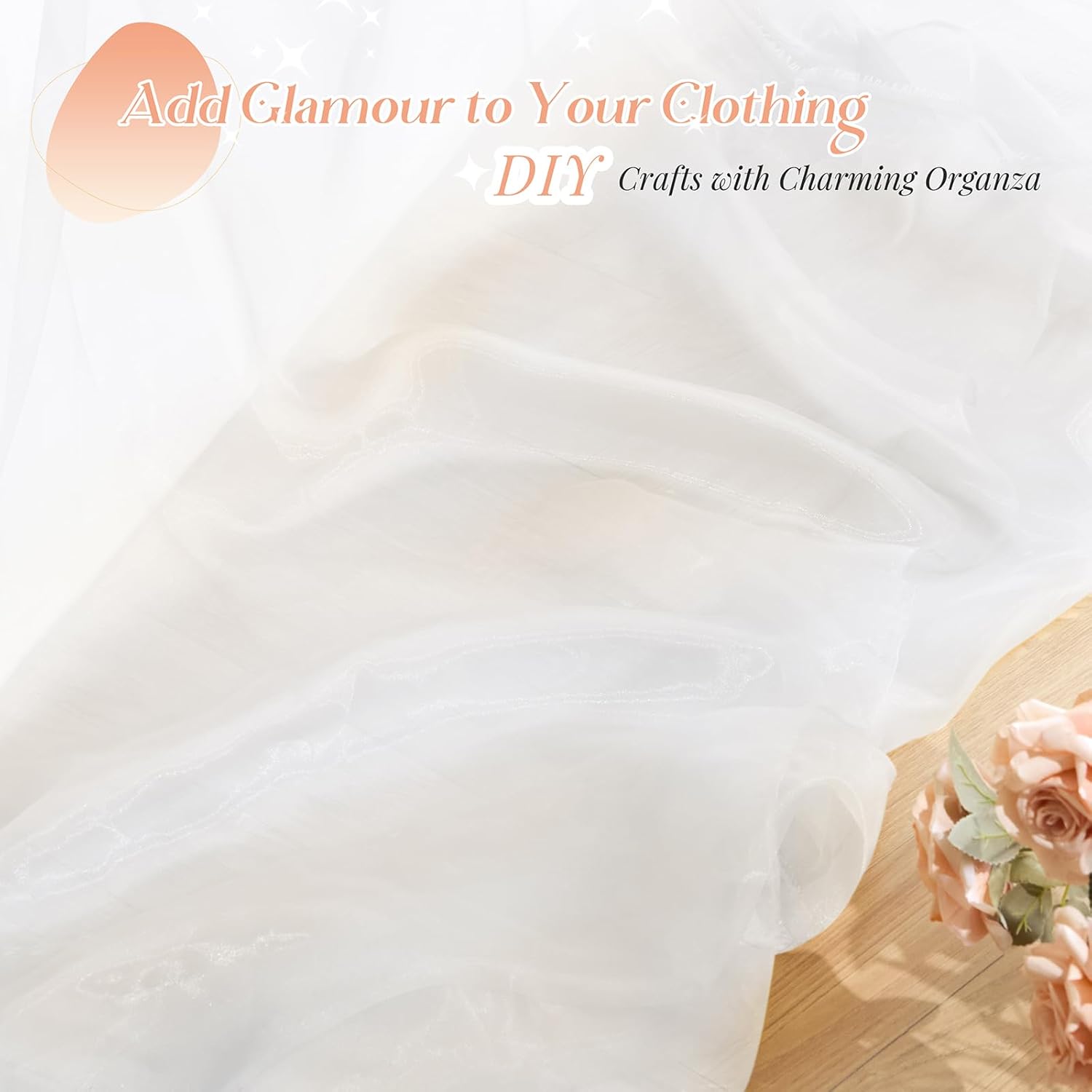 - UNLEASH YOUR CREATIVITY - Organza fabric delicate lightweight look, handmade DIY coverings on evening gowns, sheer curtains, party table decorations, arch wedding decorations and more. From innovative crafts to simple home decor, greatly enhance the creative effect.