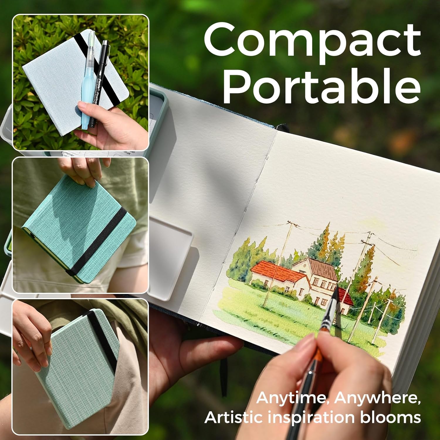 Funto Watercolor Journal, 4.7x4.7, 24 Sheets, 100% Cotton Hot Press, 300gsm/140lb, Inner Paper Pocket, Art Supplies for Mixed Media