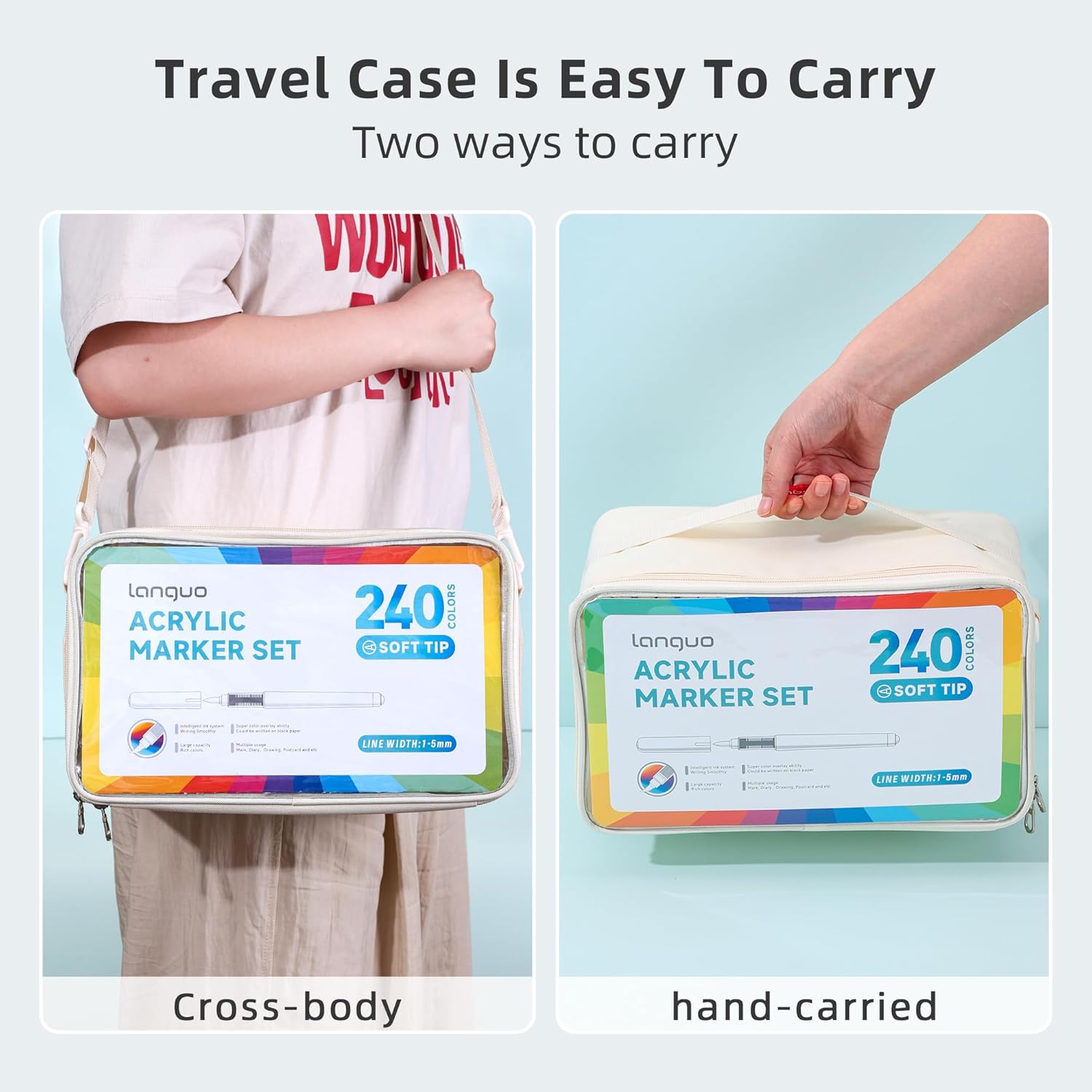 240 Colors Acrylic Paint Markers, Soft Brush Tip Marker Pens Set with Marker Bag, Acrylic Paint Pens for Fabric, Wood, Stone, Canvas, Glass, Egg, Rock Painting, DIY Crafts and Art Supplies